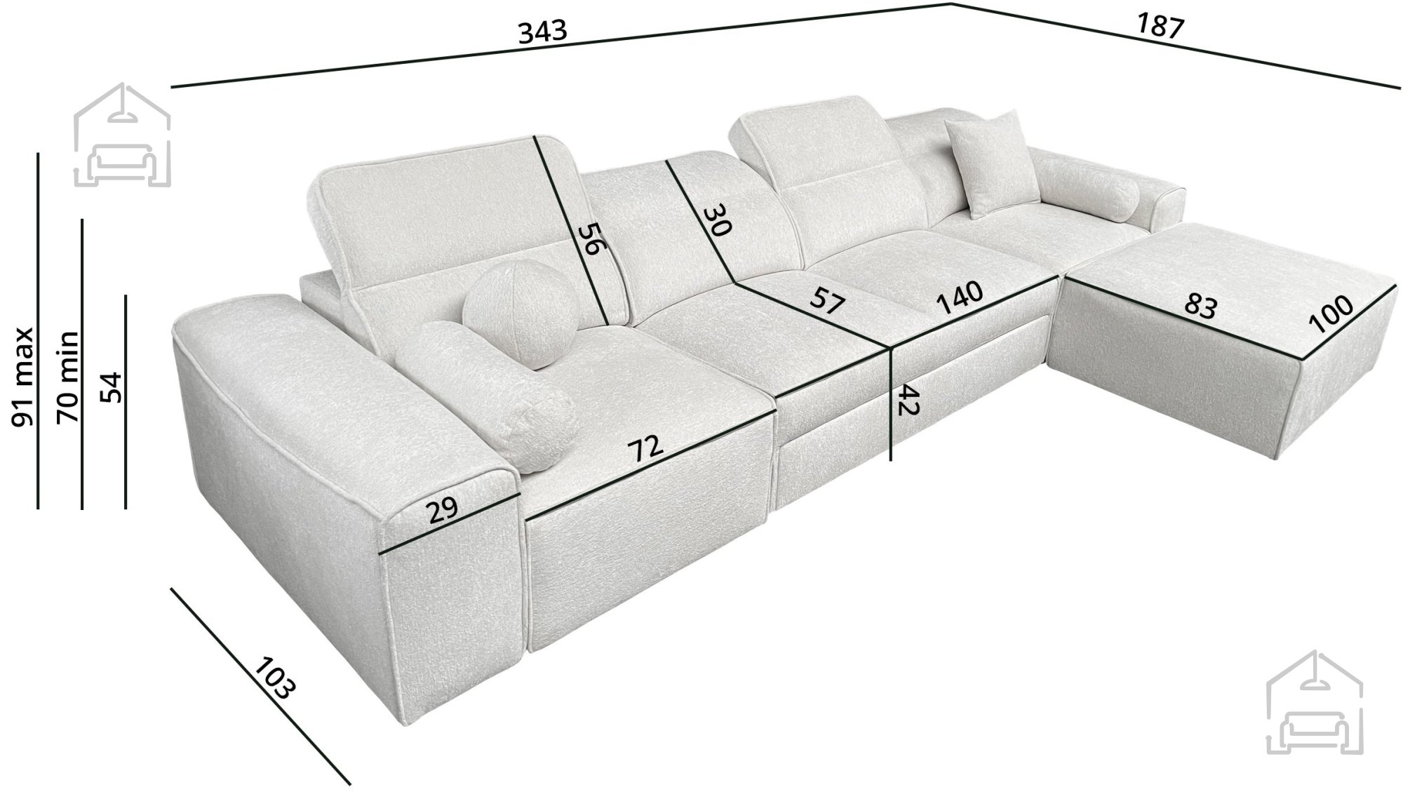 Das Ecksofa Vito XII ist nicht nur ein Möbelstück, sondern das Zentrum Ihres Wohnraums, das Funktionalität und Ästhetik vereint. Mit seinem außergewöhnlichen Design und seinen durchdachten Eigenschaften ist es die perfekte Wahl für alle, die ihrem Zuhause einen Hauch von modernem Luxus und Praktikabilität verleihen möchten. Verpassen Sie nicht die Gelegenheit, Ihr Zuhause mit diesem außergewöhnlichen Sofa zu bereichern, das mit Sicherheit zum Lieblingsplatz der ganzen Familie wird.