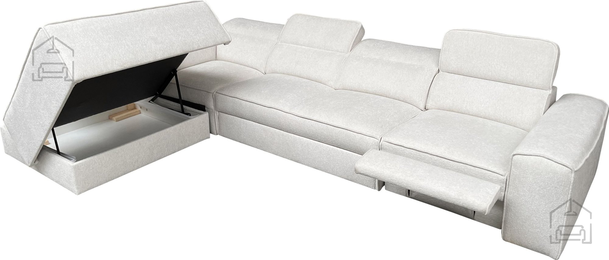 Garnitura je opremljena z inovativnim mehanizmom Dolphin, ki omogoča hitro in enostavno pretvorbo v ležišče dimenzij 198x127 cm. To je idealna rešitev za nenapovedane goste ali prijeten večer pred televizorjem. Poleg tega ima garnitura električno izvlečni podnožnik, ki ga lahko prilagodite na želeno višino s pritiskom na gumb, kar zagotavlja še večje udobje.