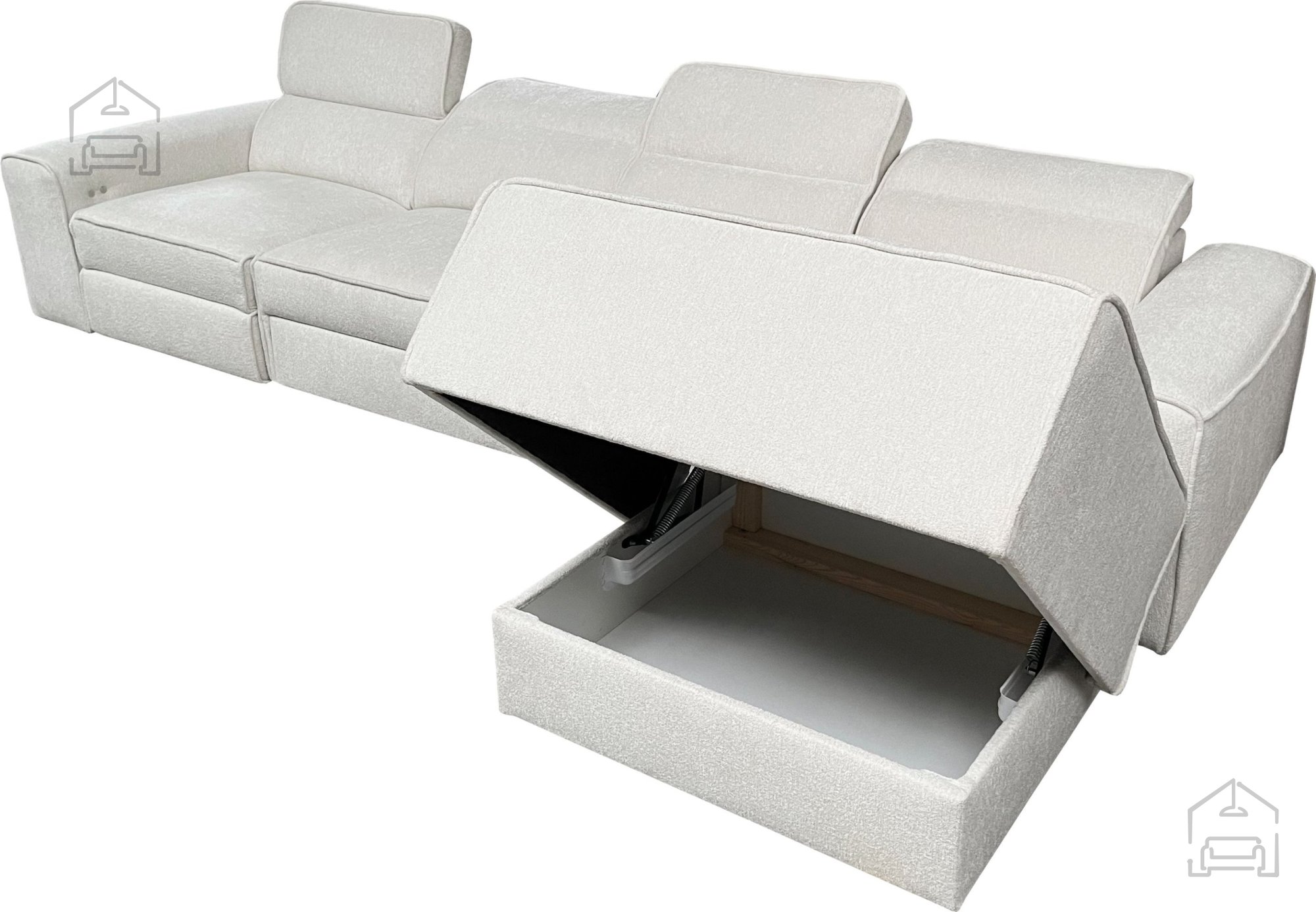 Kotna sedežna garnitura Vito XII Mix ni le estetsko privlačna, temveč tudi izjemno praktična. Vgrajen predal za posteljnino omogoča shranjevanje dodatnih odej, vzglavnikov ali drugih predmetov, kar pripomore k urejenemu prostoru. Poleg tega električno izvlečni počivalnik omogoča prilagajanje višine po vaših željah, kar še dodatno povečuje udobje.