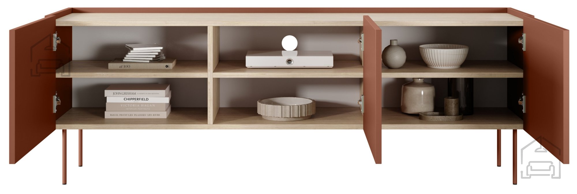 Wenn Sie ein Möbelstück suchen, das modernes Design mit hoher Funktionalität verbindet, ist die TV-Kommode Desin 170 3D genau das Richtige für Ihr Zuhause. Diese außergewöhnliche Kommode in Keramikrot bringt Frische und Eleganz in jeden Raum und sorgt gleichzeitig für praktische Aufbewahrung und Ordnung Ihrer Multimedia-Geräte.