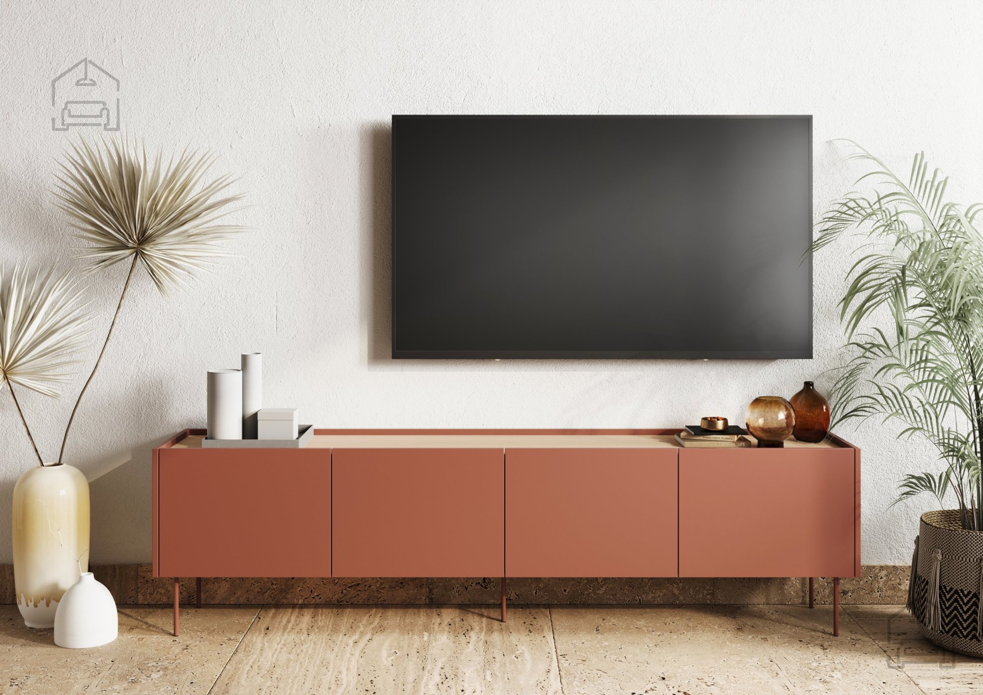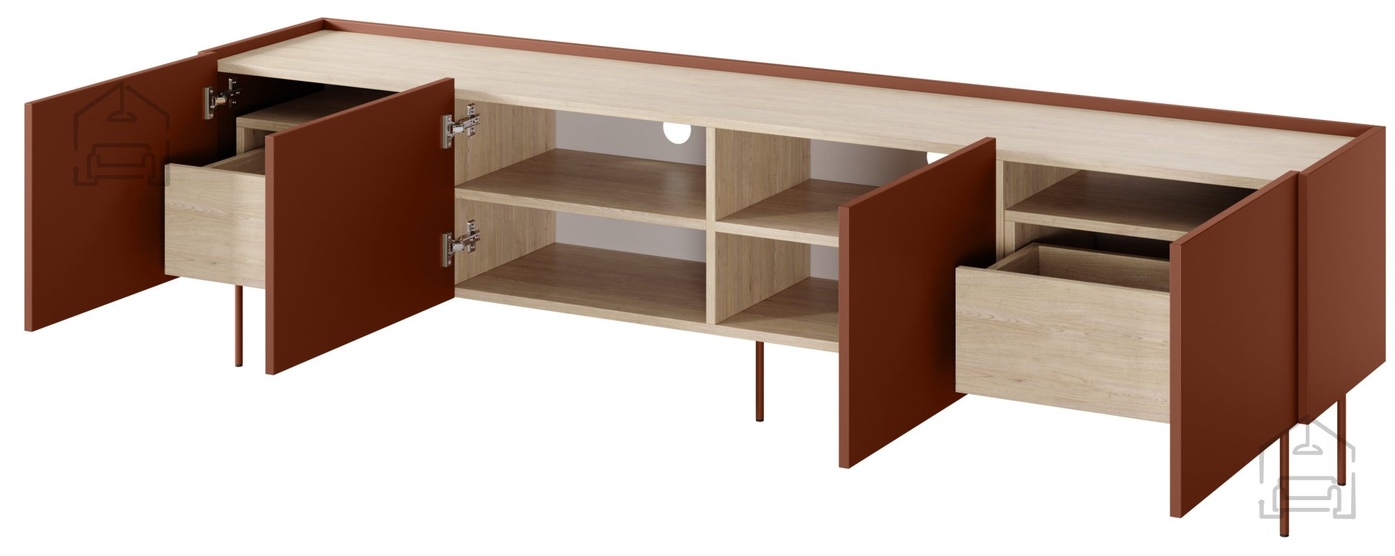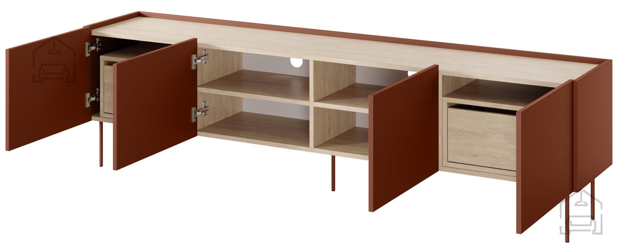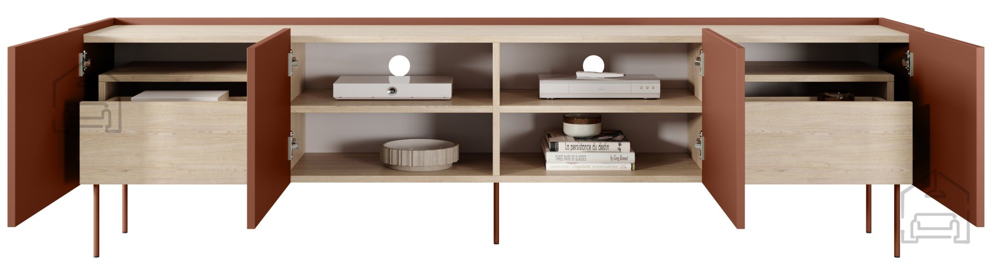 Wenn Sie eine gelungene Verbindung aus modernem Design und Funktionalität suchen, ist die TV-Kommode Desin 220 4D2SZ in Keramik-Rot genau das Richtige für Ihr Zuhause. Dieses besondere Möbelstück wird schnell zum Mittelpunkt Ihres Wohnzimmers, da es Eleganz und Alltagstauglichkeit perfekt vereint.