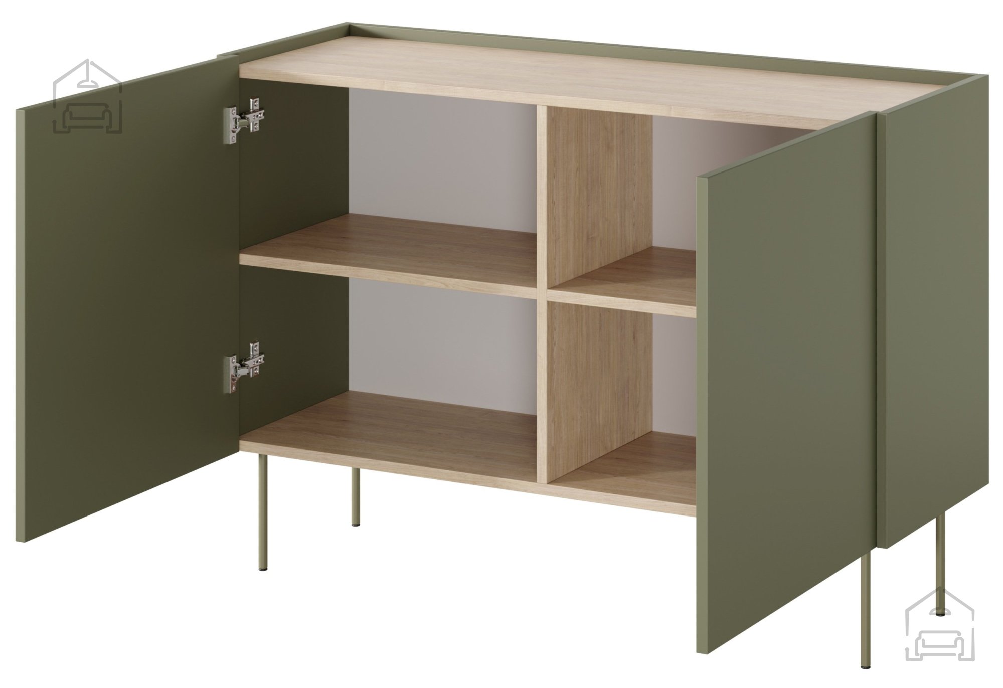 Entdecken Sie die perfekte Verbindung von Stil, Qualität und Funktionalität mit der Kommode Desin 120 2D in einem charmanten Olivgrün. Dieses beeindruckende Möbelstück zieht mit seinem eleganten Design alle Blicke auf sich und bereichert jeden Raum, in dem es steht. Dank seiner zeitlosen Formgebung und hochwertigen Materialien ist die Kommode Desin die ideale Wahl für alle, die Wert auf Ästhetik und Praktikabilität legen.