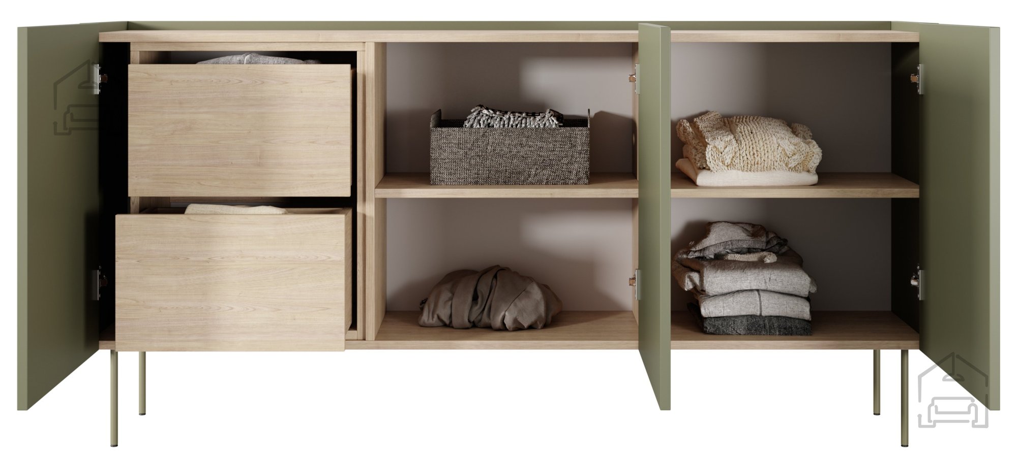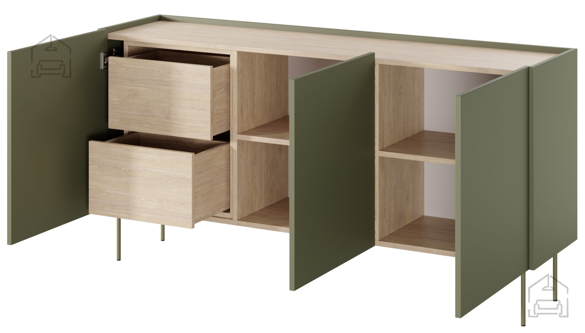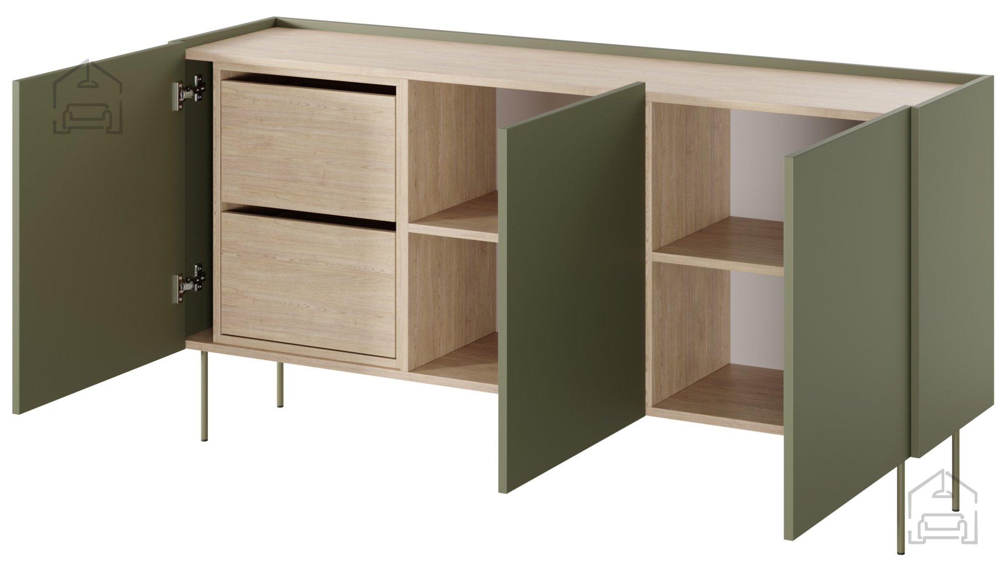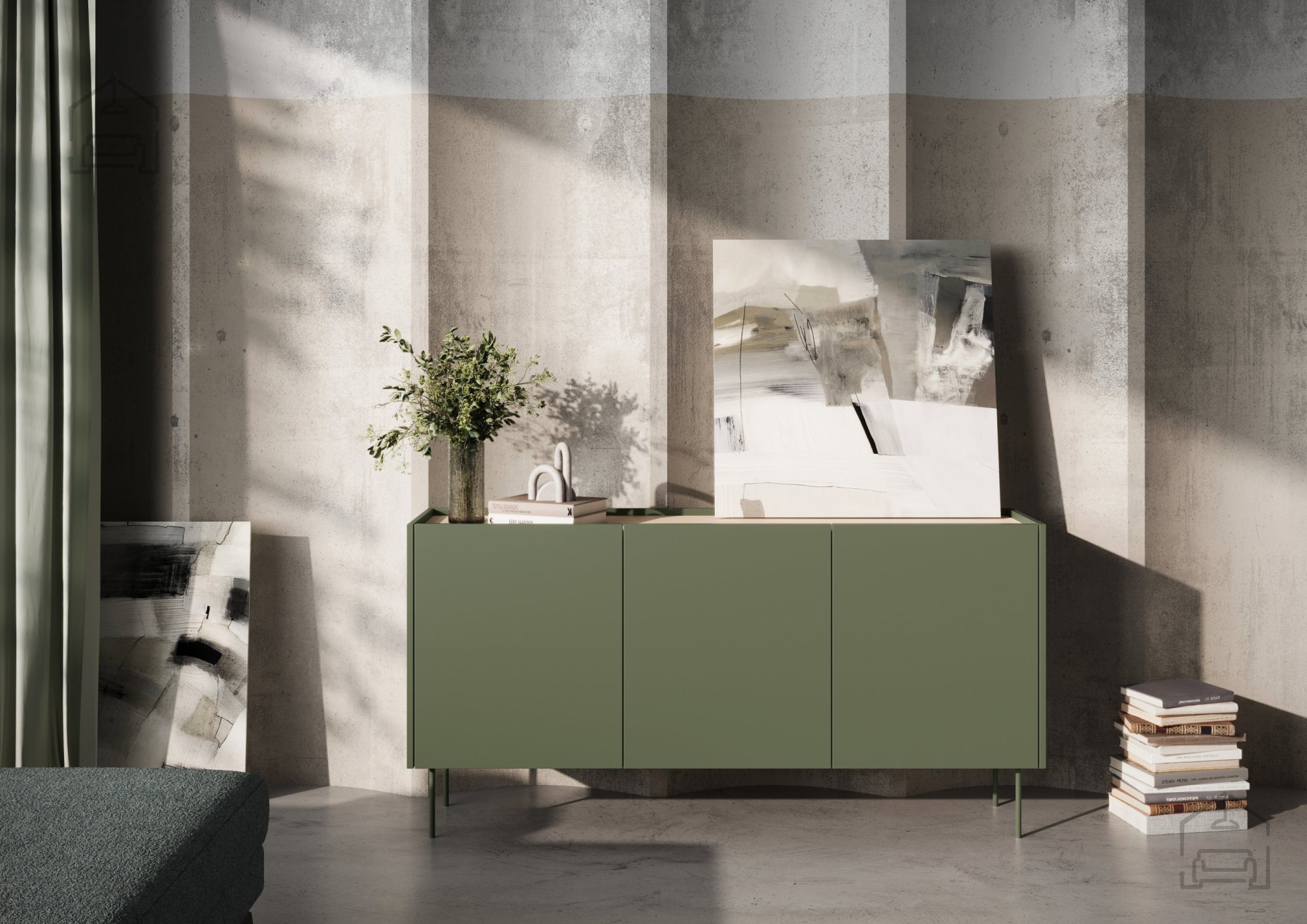 Entdecken Sie die gelungene Verbindung aus modernem Design und natürlicher Ausstrahlung mit der Kommode Desin 170 3D2SZ in stilvollem Olivgrün. Dieses Möbelstück ist nicht nur ein schöner Blickfang, sondern auch eine durchdachte Aufbewahrungslösung, die Wärme und Funktionalität in Ihren Wohnraum bringt.