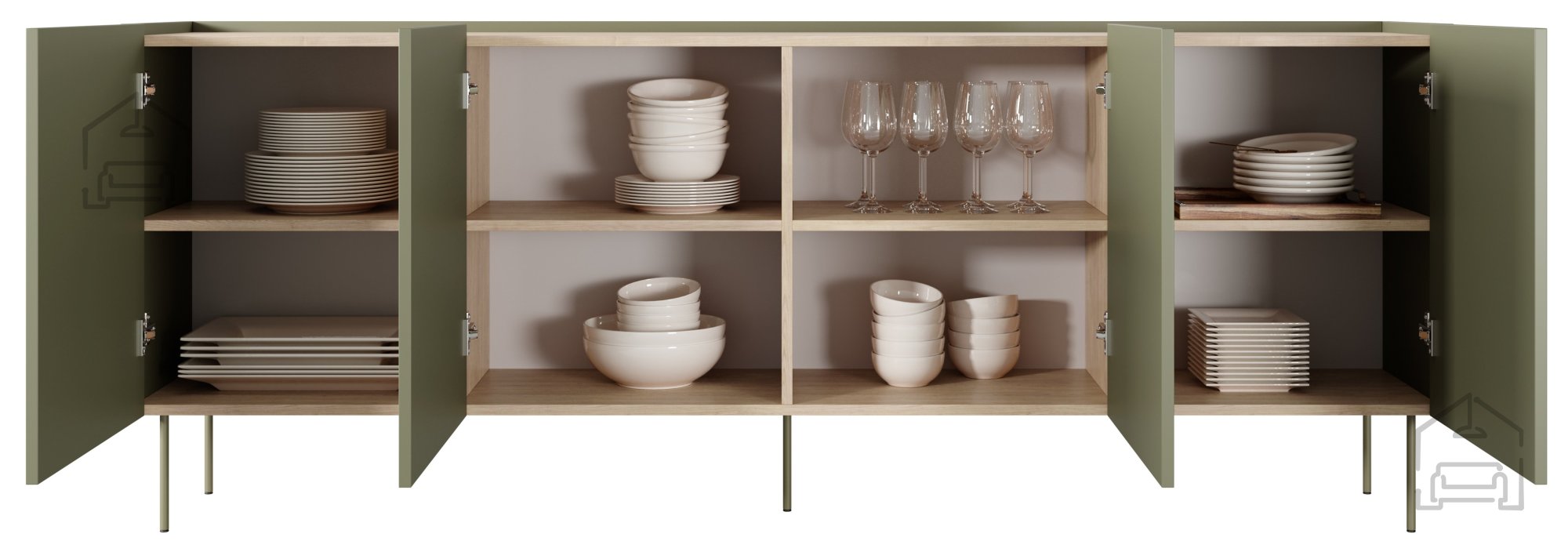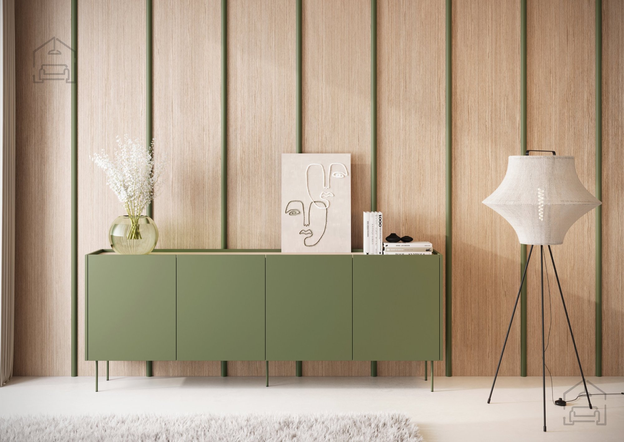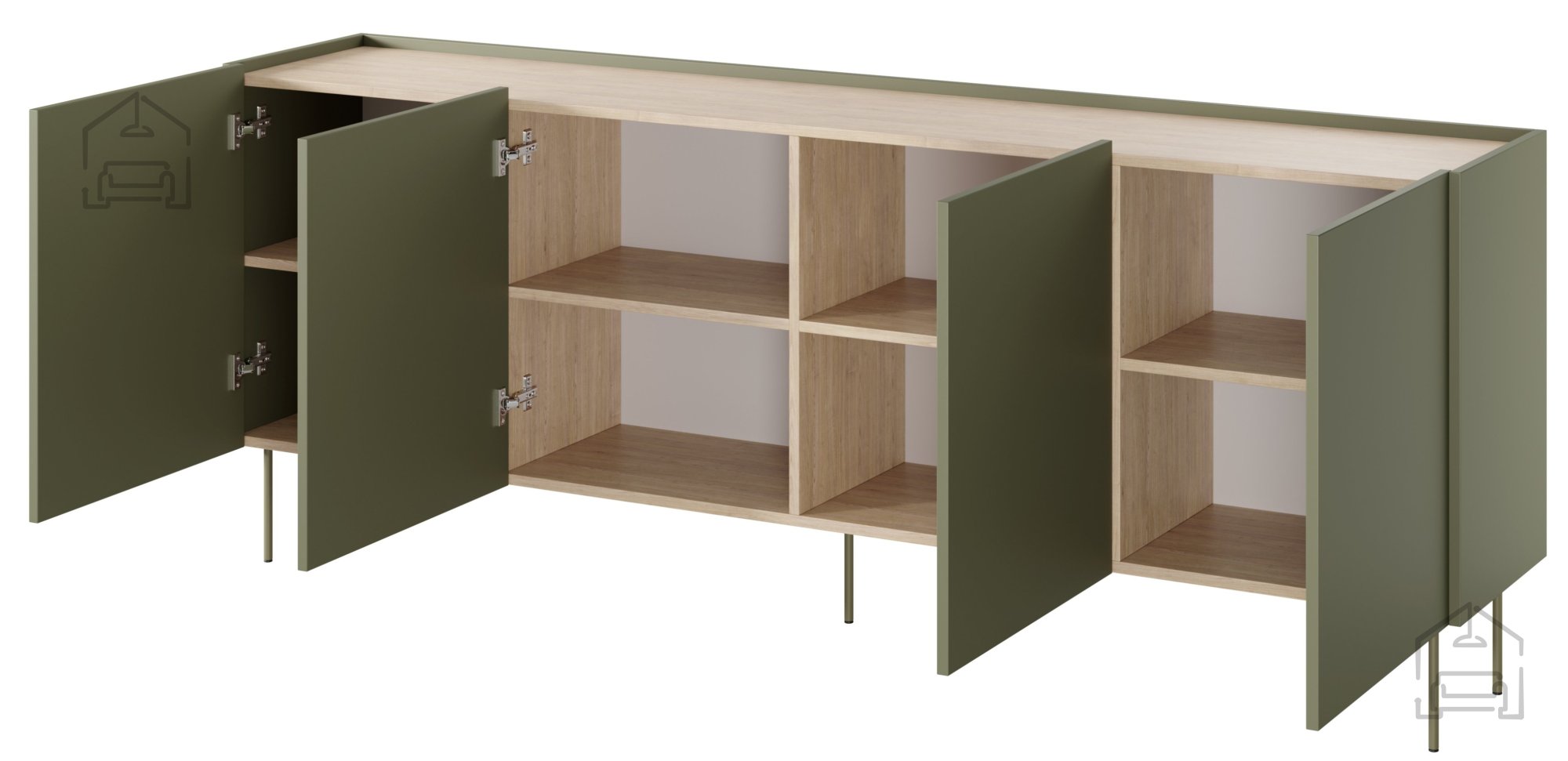 Treten Sie ein in eine Welt voller Stil und Funktionalität mit unserer Kommode Desin 220 4D in edlem Olivgrün. Dieses außergewöhnliche Möbelstück überzeugt nicht nur durch seine ansprechende Optik, sondern auch durch seine hohe Praxistauglichkeit – eine gelungene Kombination aus hochwertigen Materialien und durchdachtem Design. Mit den Maßen 220x40x85 cm passt sie perfekt in jeden Raum, ob im Wohnzimmer, Schlafzimmer oder Büro.