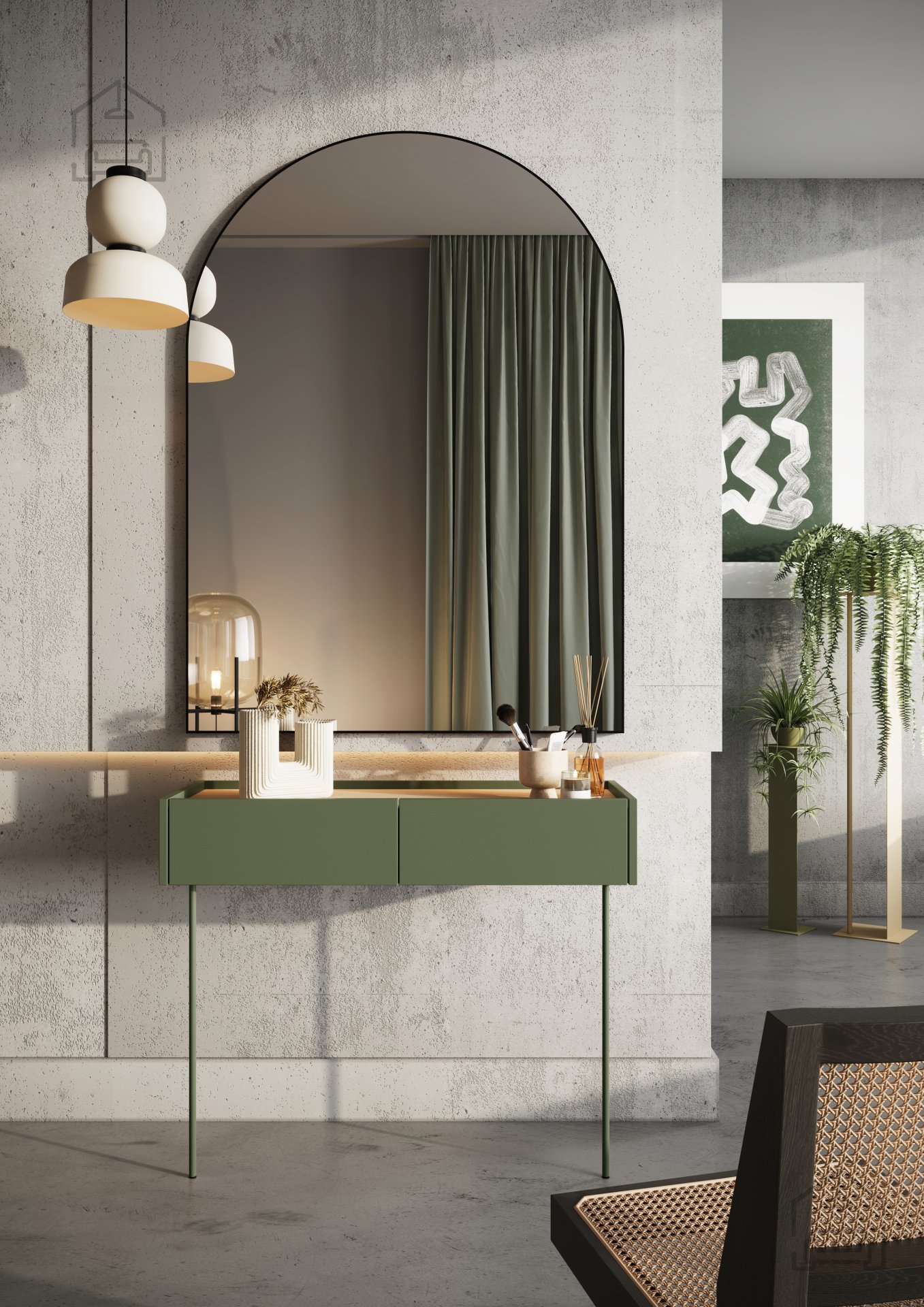 Entdecken Sie die perfekte Verbindung von Stil und Funktionalität mit dem Schminktisch Desin 2SZ – ideal für alle, die Sinn für feine Ästhetik und praktische Lösungen haben. Dieser Tisch in edlem Olivgrün ist weit mehr als nur ein Möbelstück – er ist ein echtes Design-Highlight, das jeden Raum aufwertet.
