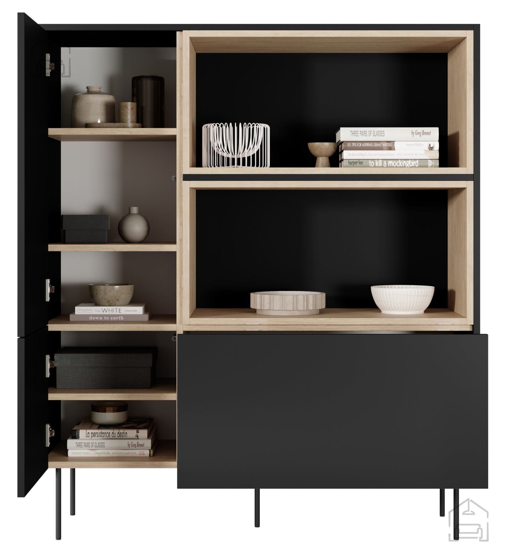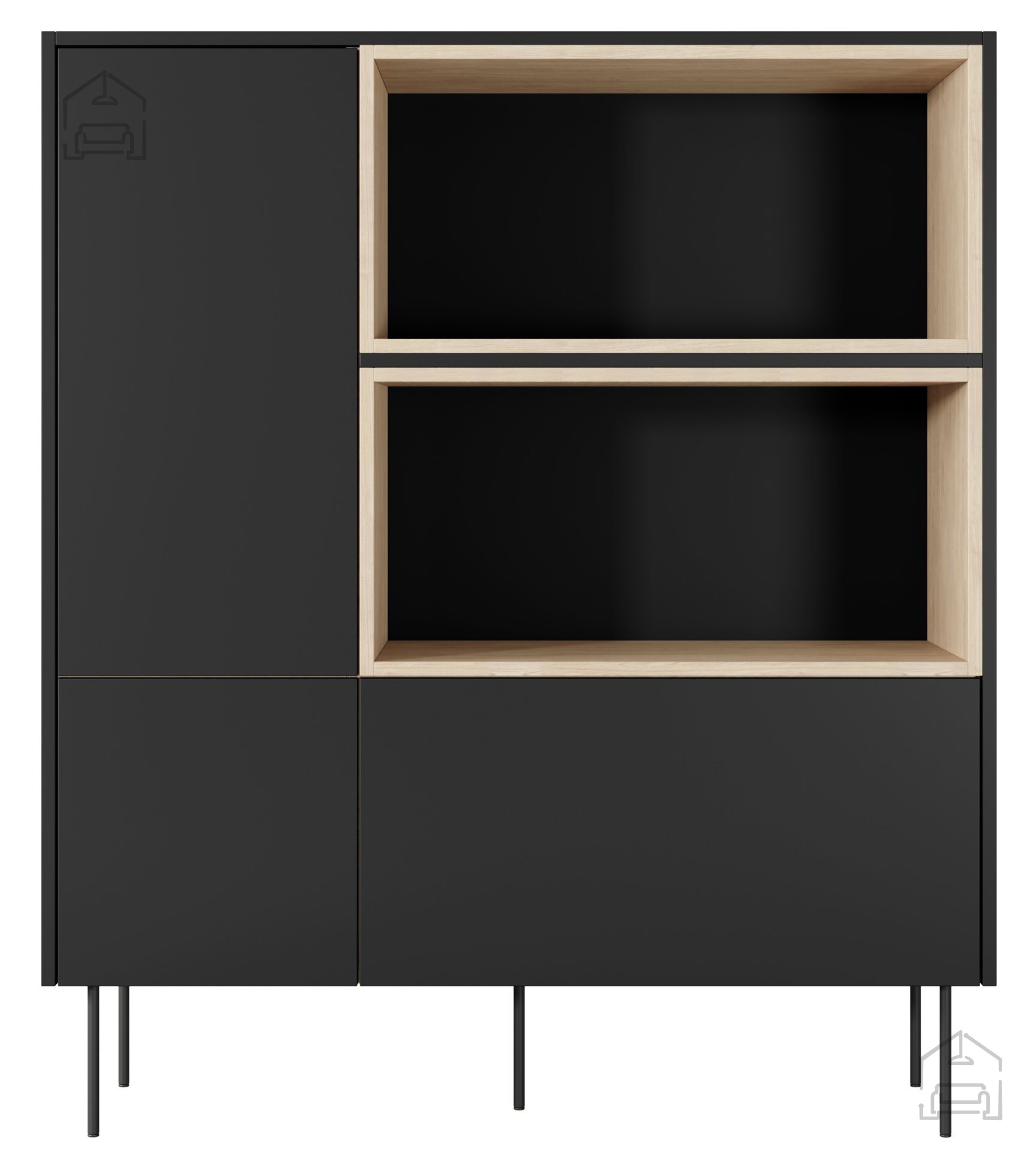 Gefertigt aus einer 18 mm starken Möbelplatte, überzeugt die Kommode durch Stabilität und Langlebigkeit. Die Kanten sind mit ABS-Material geschützt, was sie widerstandsfähiger gegen Abnutzung und Stöße macht. Die obere Platte in Nagano-Eiche bringt eine warme, natürliche Note, während das schwarze Korpus einen modernen Kontrast bildet. Die Rückwand aus 3 mm starker HDF-Platte sorgt für zusätzliche Stabilität und ist leicht zu pflegen.