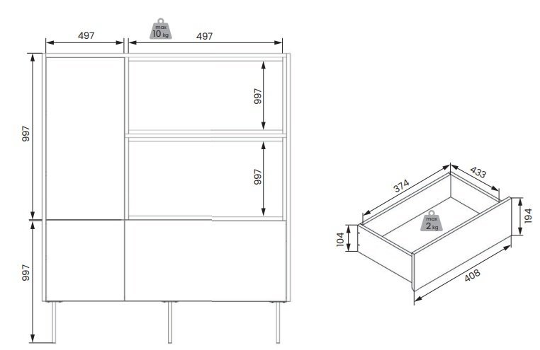 Die Kommode Desin 120 2D1SZ ist mit einem Soft-Close-System und Push-Open-Mechanismus ausgestattet, was ein leises und müheloses Öffnen und Schließen ermöglicht. Die 20 cm hohen Metallbeine sorgen nicht nur für Stabilität, sondern erleichtern auch die Reinigung unter der Kommode.