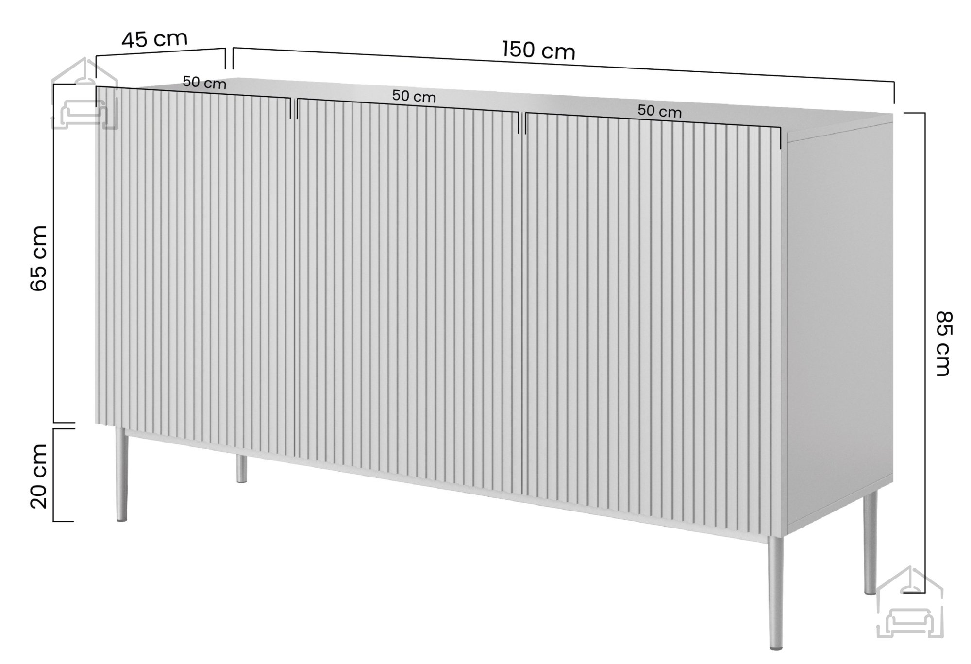 Bringen Sie Eleganz und Zweckmäßigkeit in Ihr Zuhause mit der Kommode Nicole 150 3D und genießen Sie ihr zeitloses Design Tag für Tag.