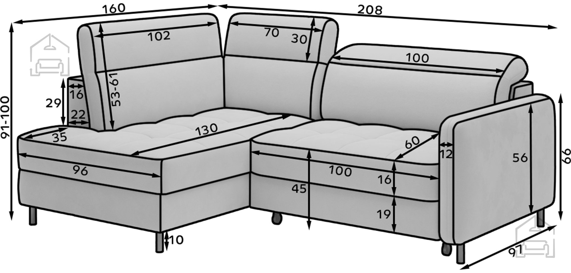 Hinweis: Die bei der Herstellung von Sofas und Sitzgarnituren verwendeten Materialien umfassen verschiedene Arten von Polyurethanschaum, Synthepon, Viskolatex usw. Es handelt sich um Produkte mit einem hohen Kompressions- und Elastizitätskoeffizienten, daher behält sich der Hersteller das Recht auf eine negative und positive Toleranz von +/- 2 % in Breite und Länge vor.