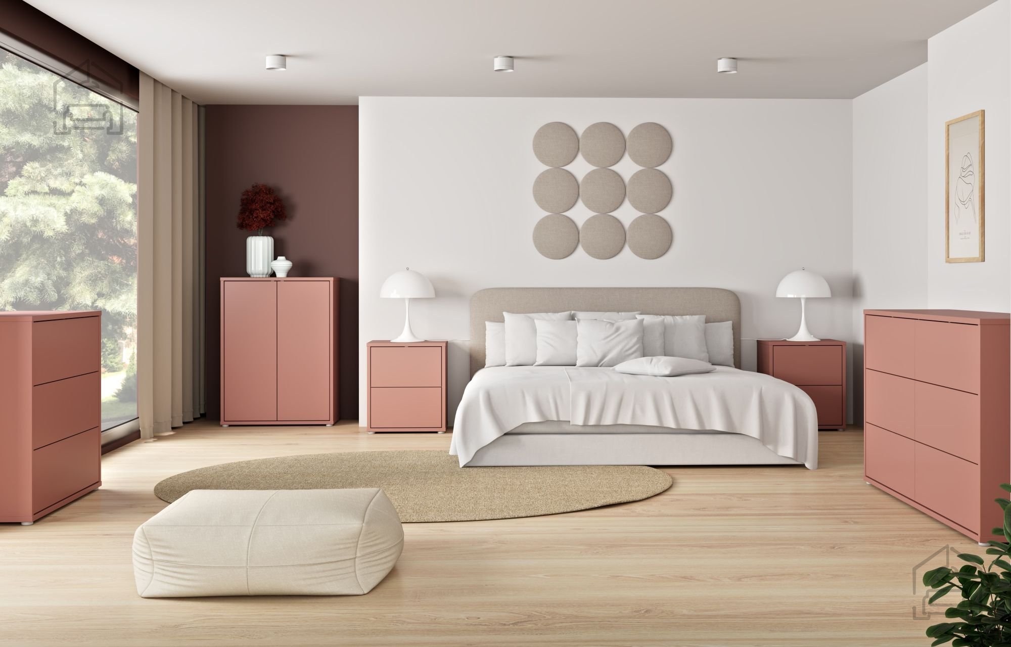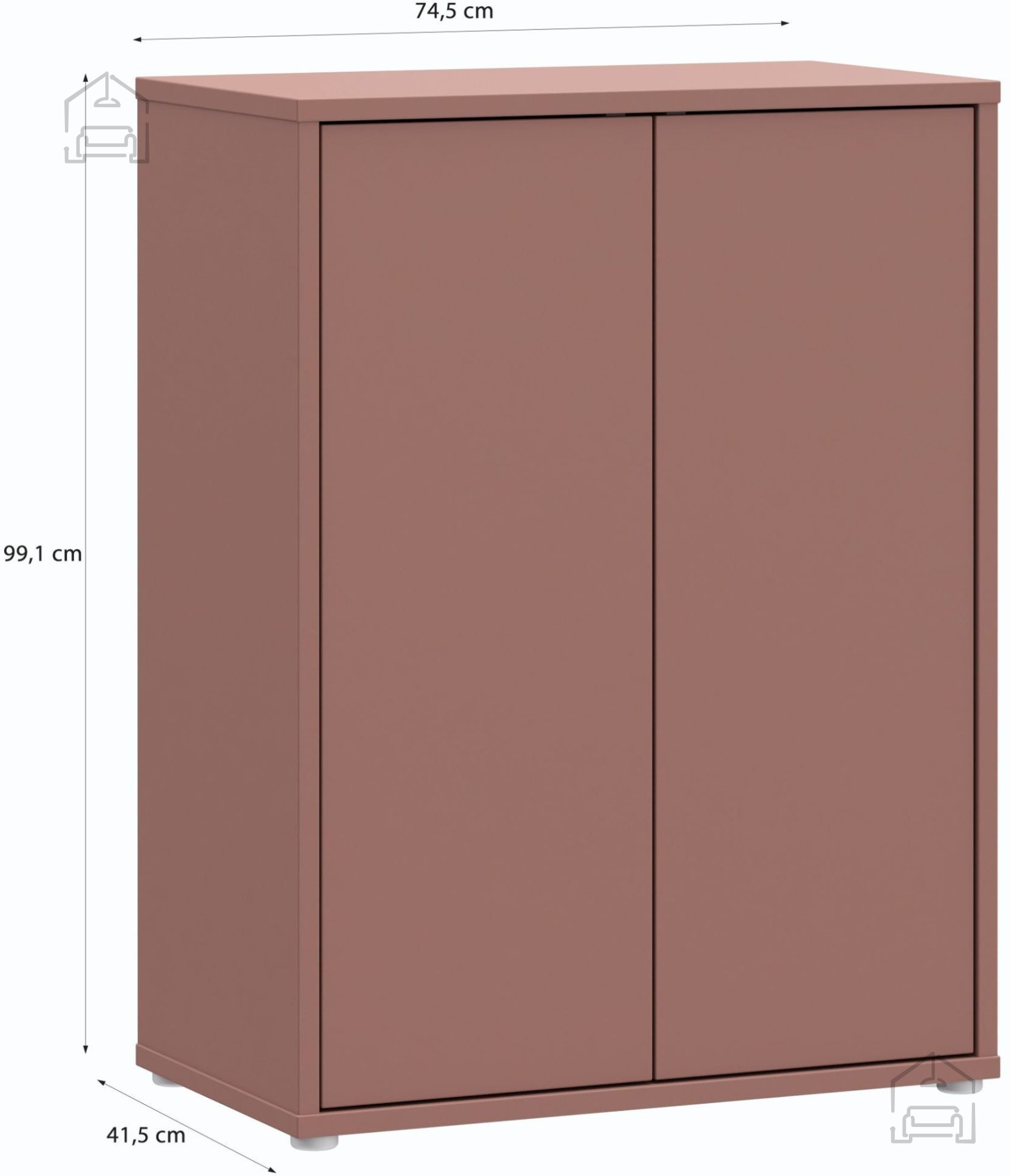 Die Terrakottafarbe dieser Kommode bringt eine einzigartige Wärme in Ihren Raum, die sich leicht mit verschiedenen Einrichtungsstilen kombinieren lässt. Egal, ob Ihr Wohnzimmer modern oder klassisch eingerichtet ist, diese Kommode verleiht einen Hauch von Eleganz und Raffinesse. Ihr minimalistisches Design mit zwei Türen und zwei verstellbaren Regalen ermöglicht eine effiziente Organisation Ihrer Utensilien.