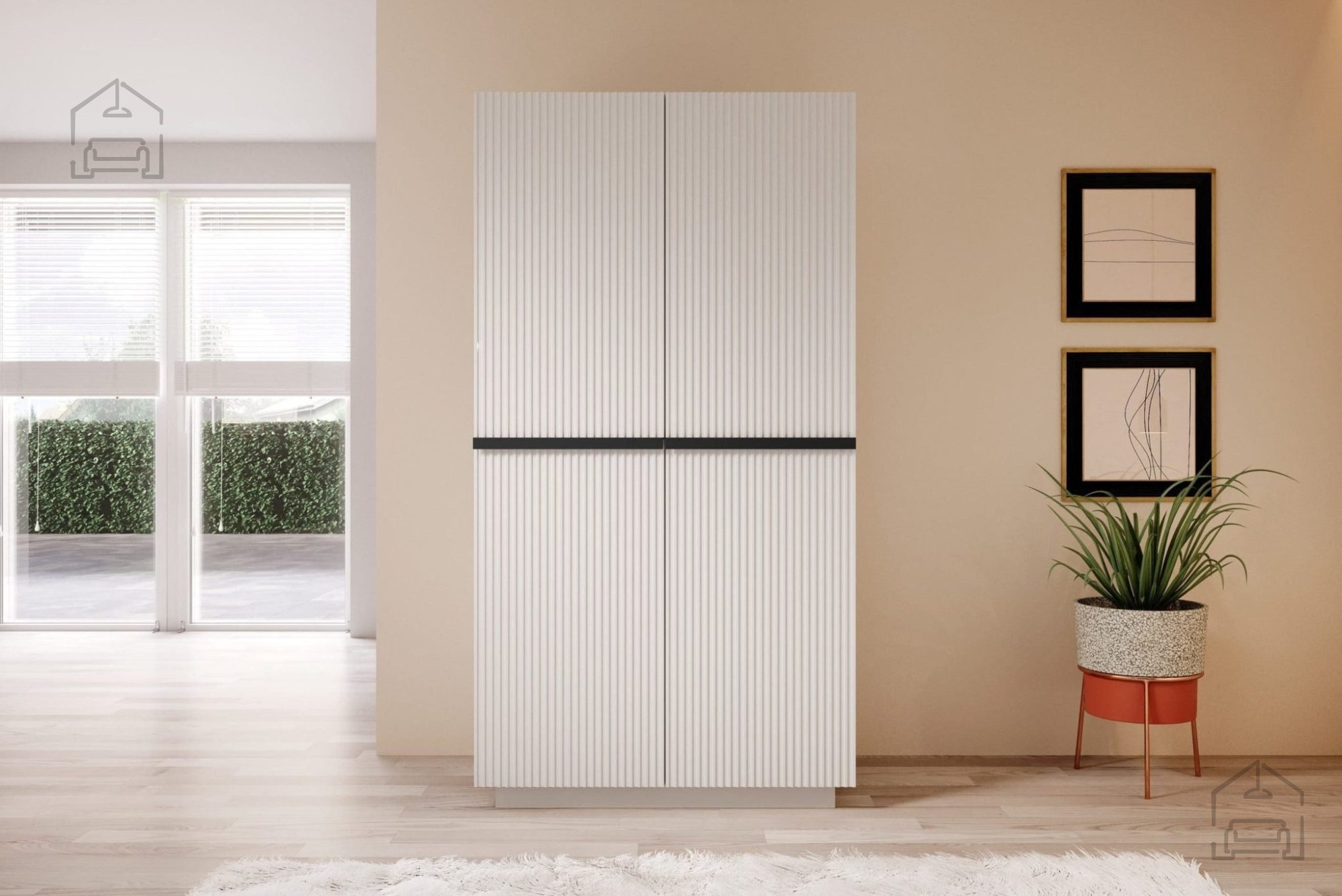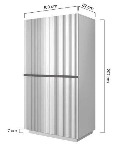 Ein besonderes Merkmal dieses Schranks ist die vertikal strukturierte Rillenoptik auf den Fronten, die jedem Raum einen modernen Touch verleiht. Das matte Weiß lässt sich mühelos mit verschiedensten Einrichtungsstilen kombinieren und bringt Helligkeit sowie Frische in den Raum.