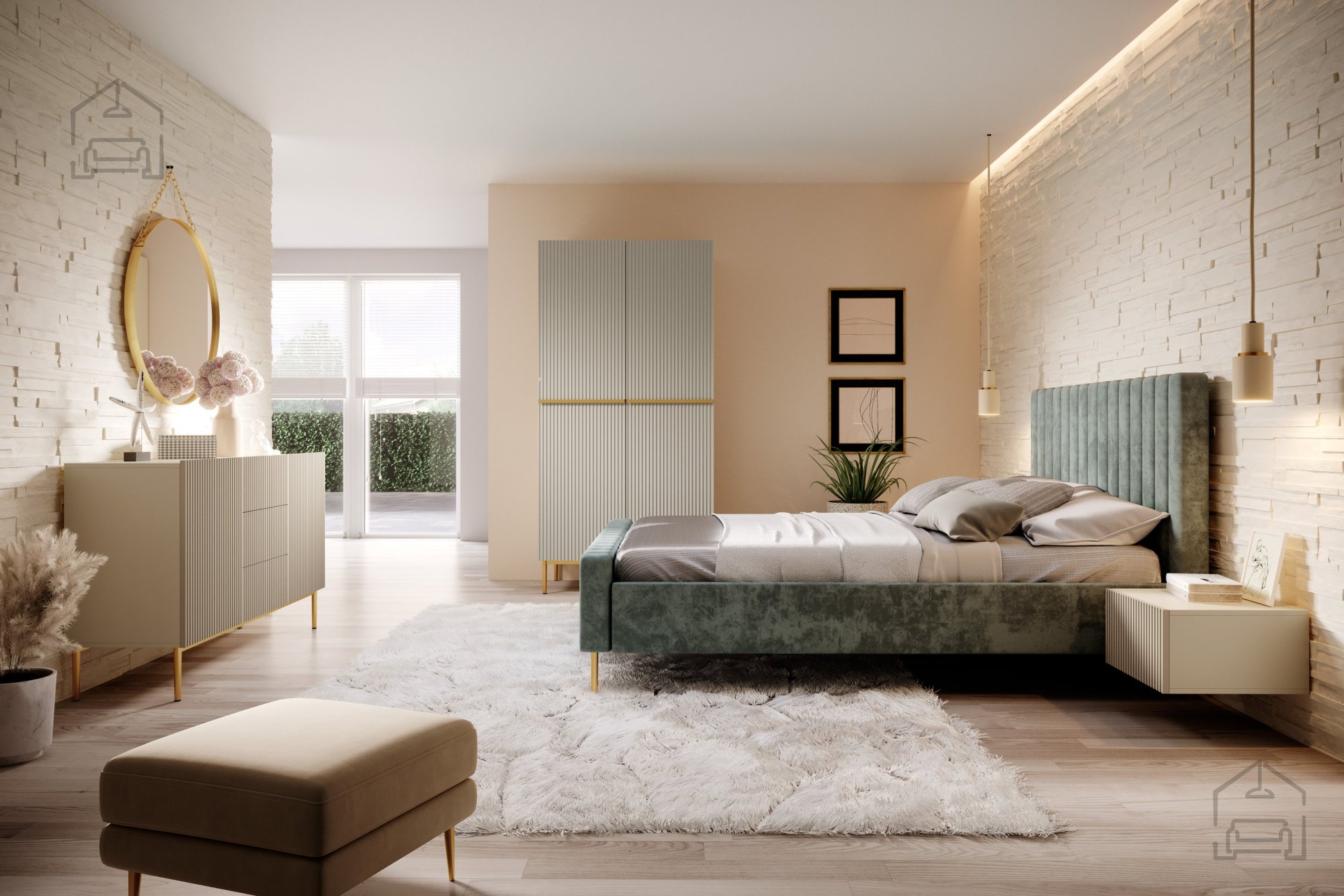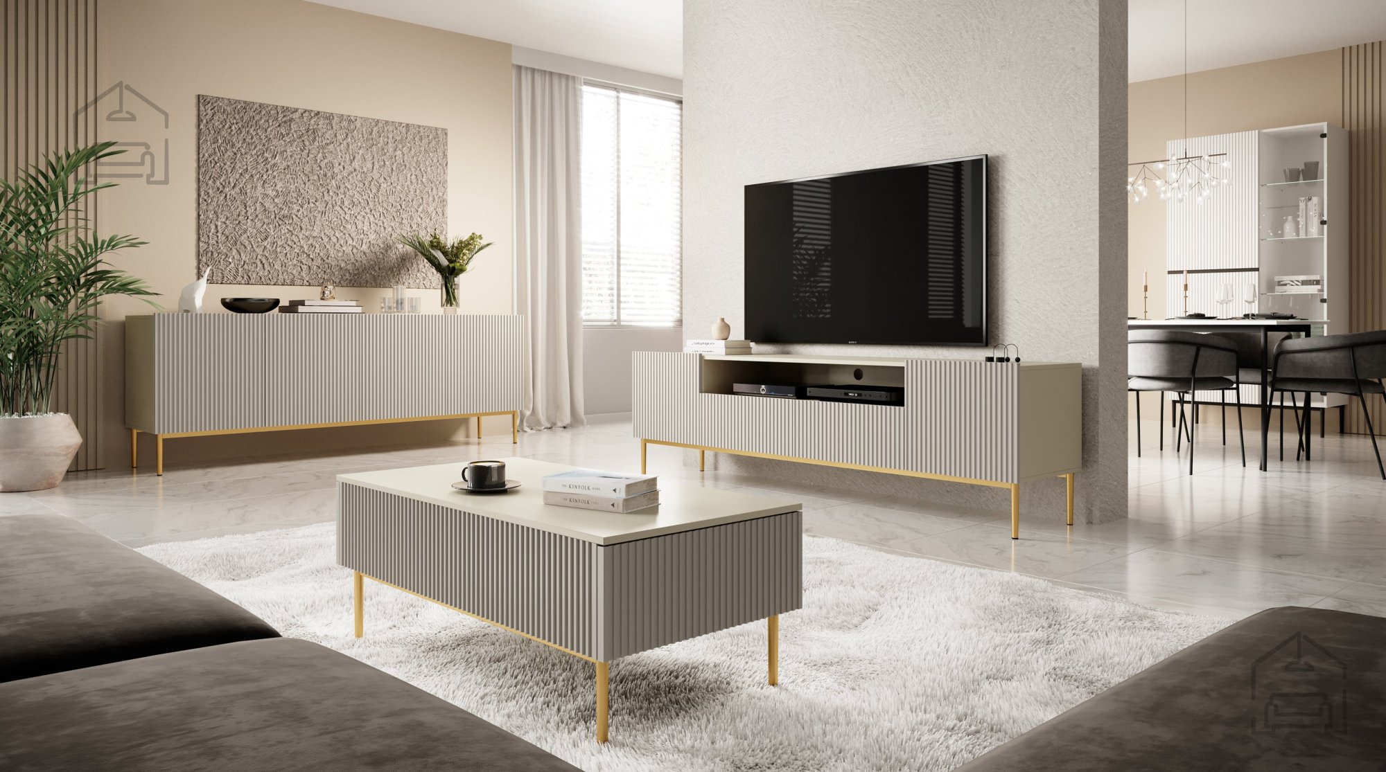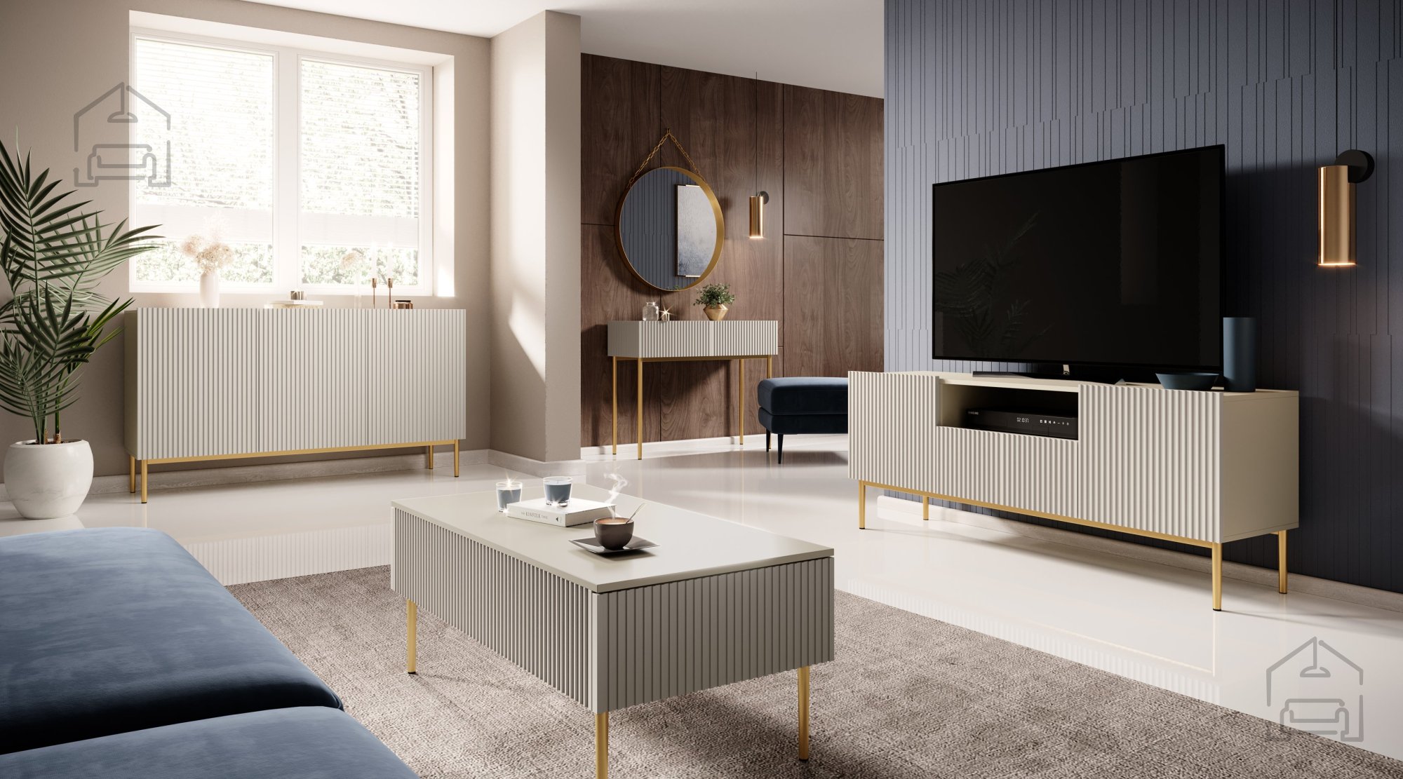 Wir präsentieren Ihnen die durchdachte Möbelkollektion Nicole, die Wohnzimmer und Schlafzimmer zu einer harmonischen Einheit verbindet. In einem warmen Kaschmir-Ton gehalten, bringt sie Stil und Behaglichkeit in Ihr Zuhause. Die Kollektion wurde für moderne Menschen entwickelt, die Wert auf Ästhetik und praktische Nutzung legen.