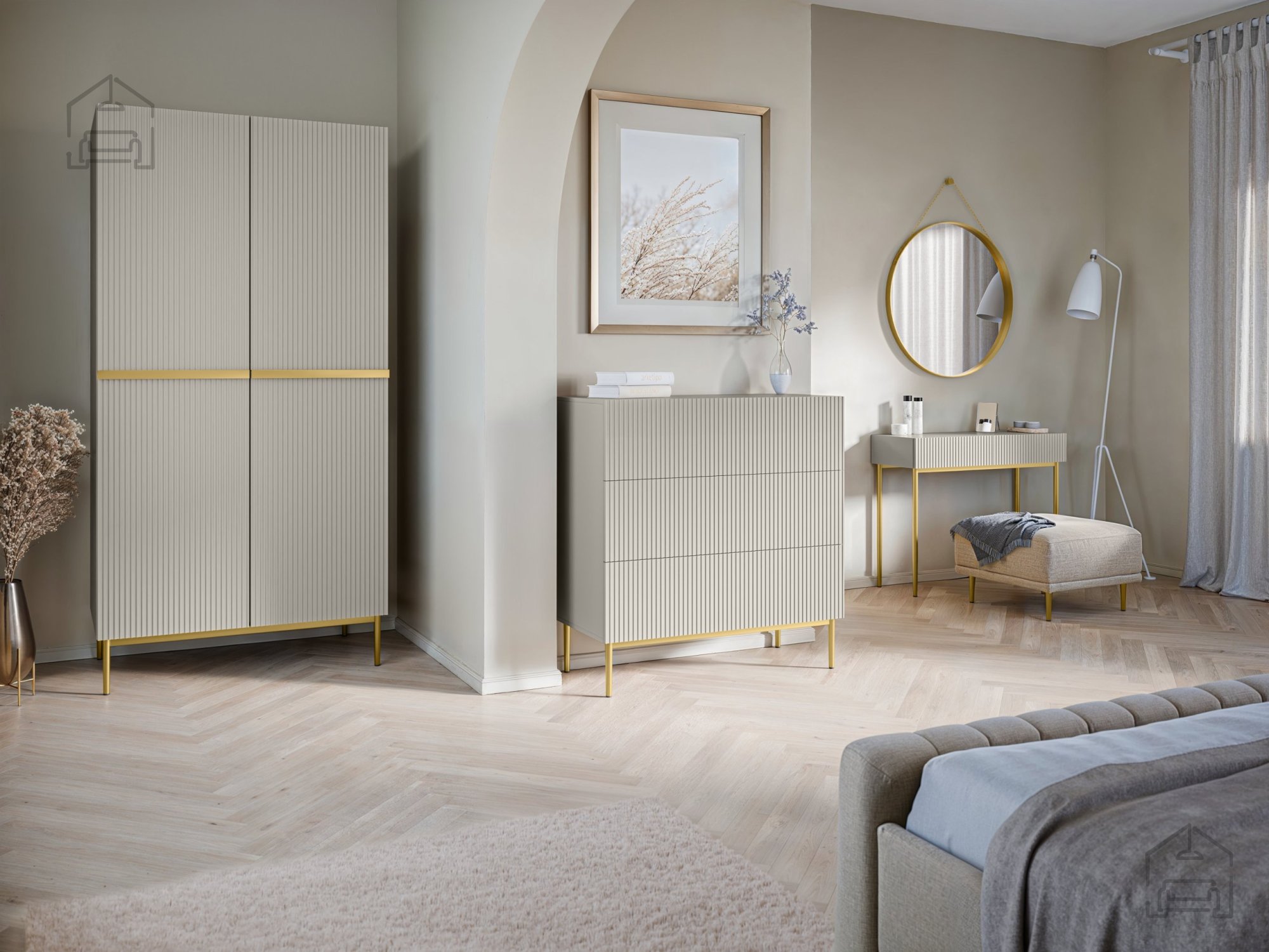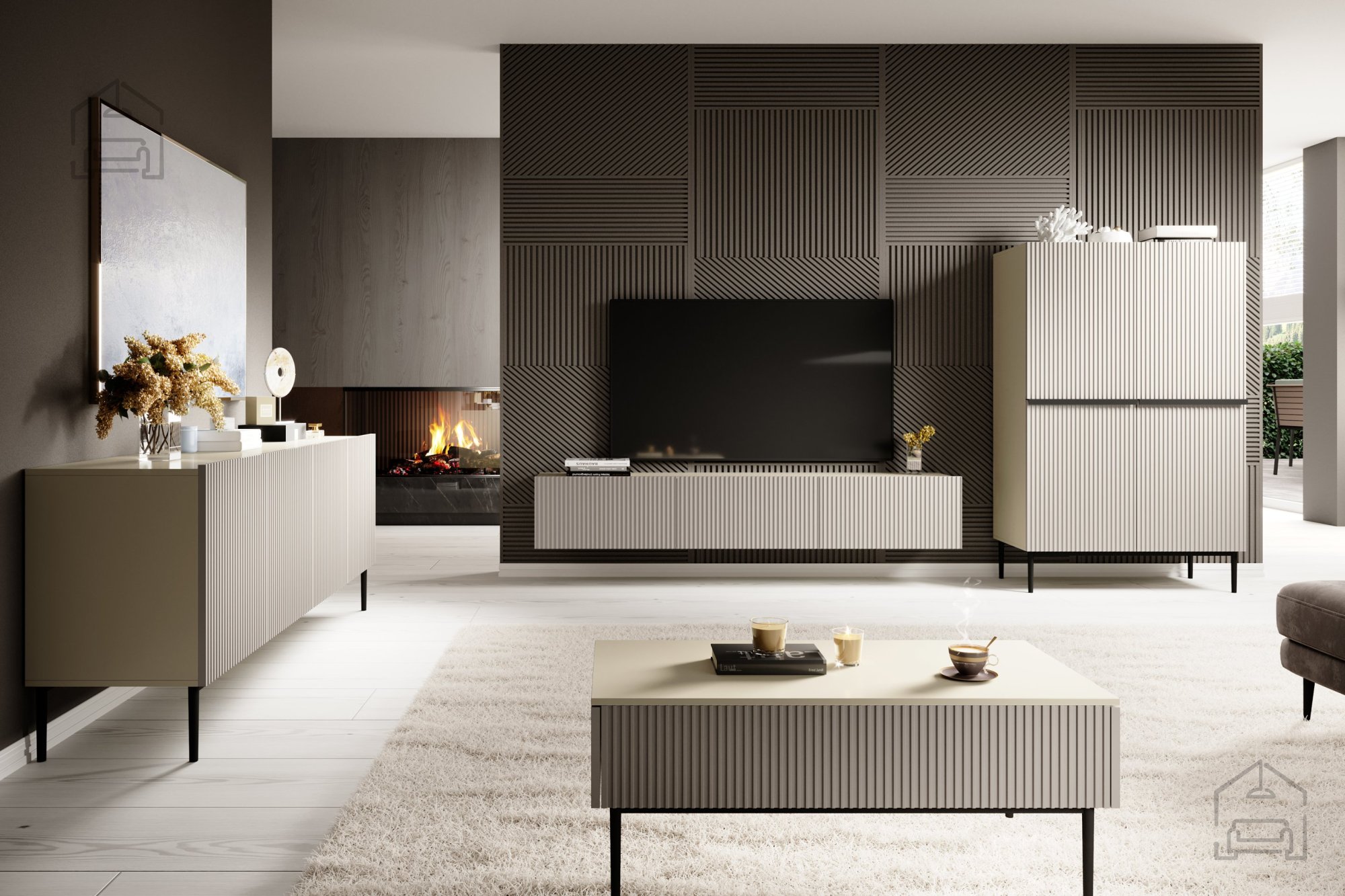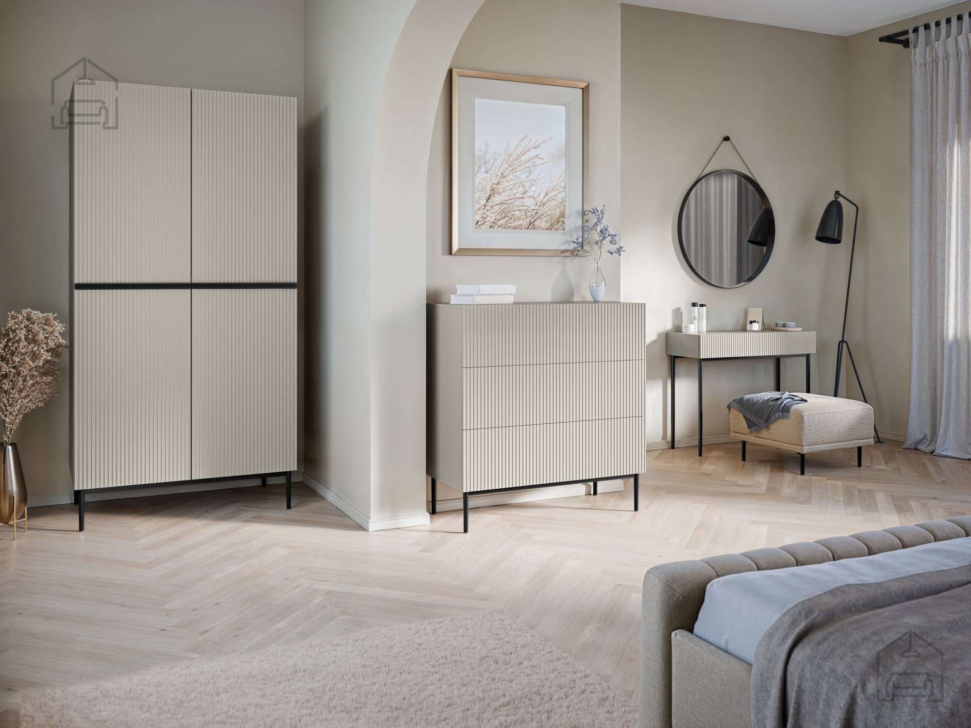 Ästhetischer Reiz: Der Kaschmir-Farbton und das gerillte Frontdesign schaffen eine stilvolle Atmosphäre, die jedes moderne Interieur bereichert.