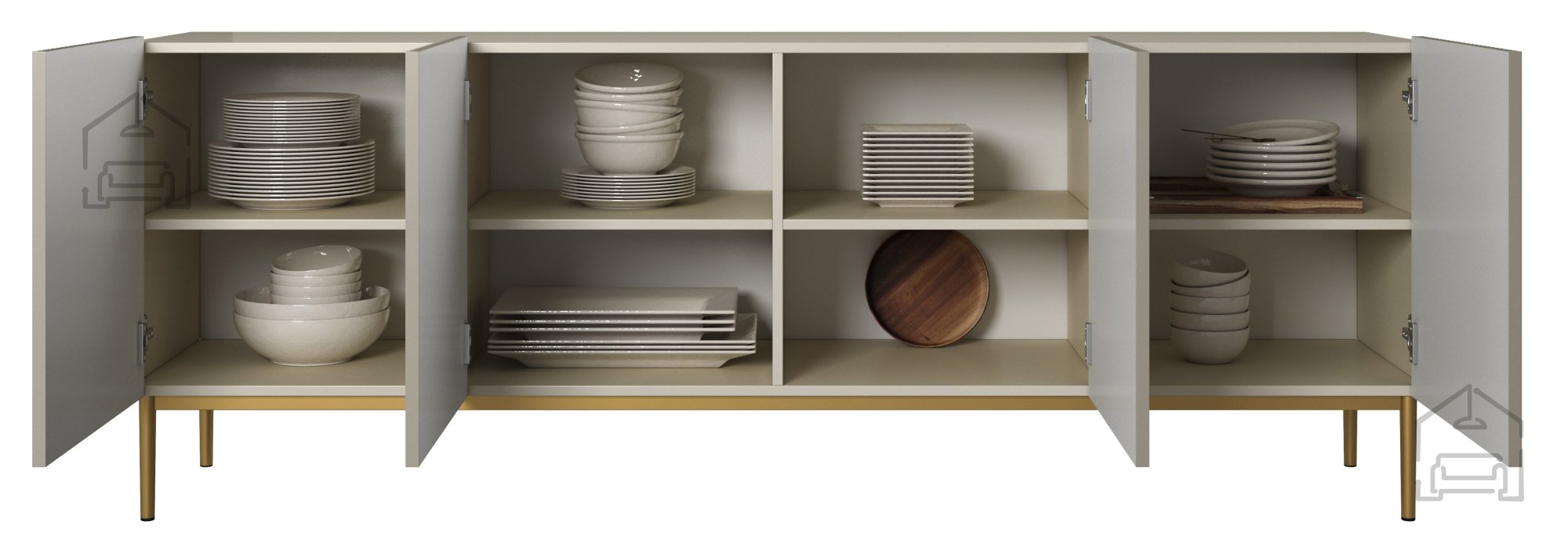Wenn es um die Einrichtung Ihres Zuhauses geht, ist die Kommode Nicole 200 4D in der Farbe Kaschmir die perfekte Wahl. Sie vereint Eleganz, Funktionalität und modernes Design. Mit ihren Maßen von 200x45x85 cm zieht dieses außergewöhnliche Möbelstück garantiert alle Blicke auf sich und wird rasch zum zentralen Element Ihres Wohnraums.