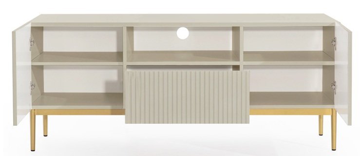 Tauchen Sie ein in die Welt von Eleganz und Funktionalität mit unserer außergewöhnlichen TV-Kommode Nicole 150 2D1SZ in edlem Kaschmir-Ton. Dieses besondere Möbelstück vereint modernes Design mit praktischer Alltagstauglichkeit und verleiht Ihrem Zuhause ein Gefühl von Stil und Gemütlichkeit.