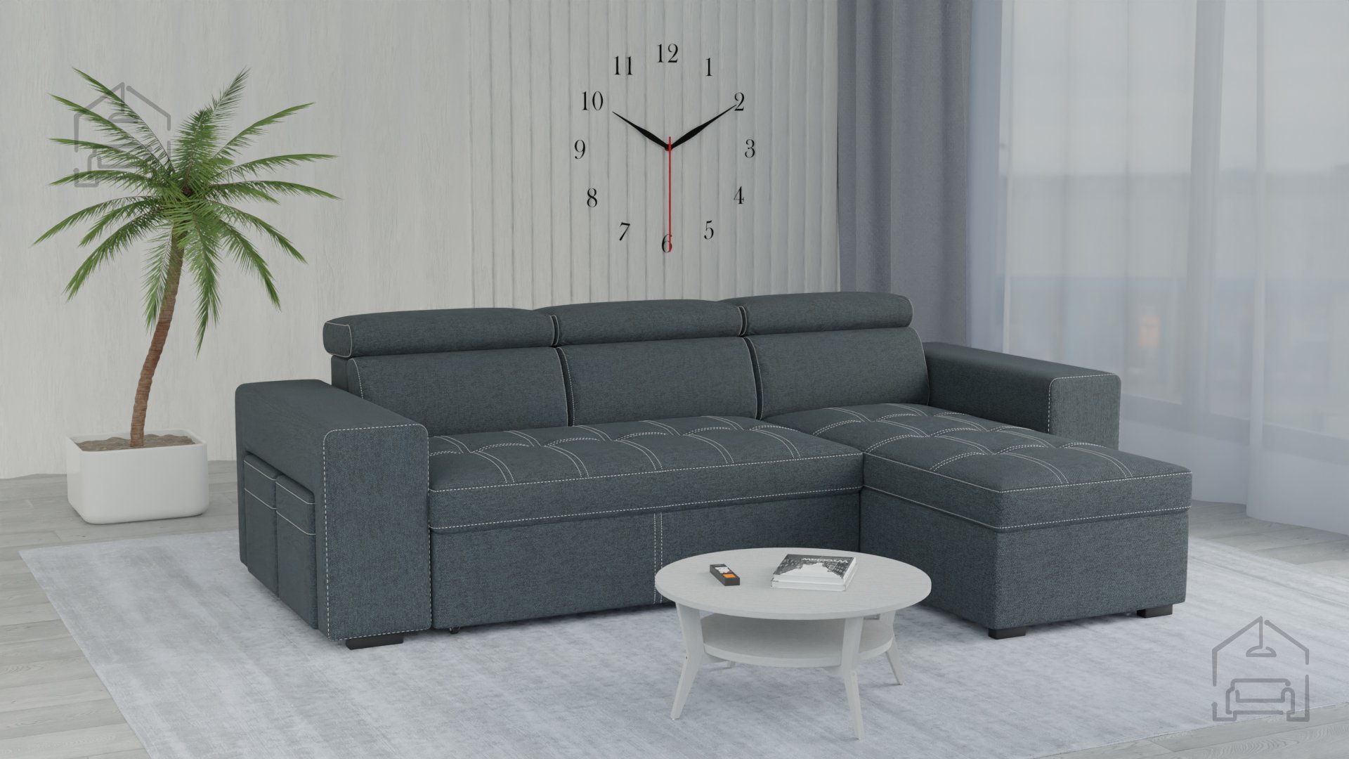 Poleg udobja in elegantnega dizajna je garnitura Newton opremljena tudi s praktičnim predalom za posteljnino, kar omogoča učinkovito shranjevanje dodatnih odej in blazin, da bo vaš dnevni prostor vedno urejen.