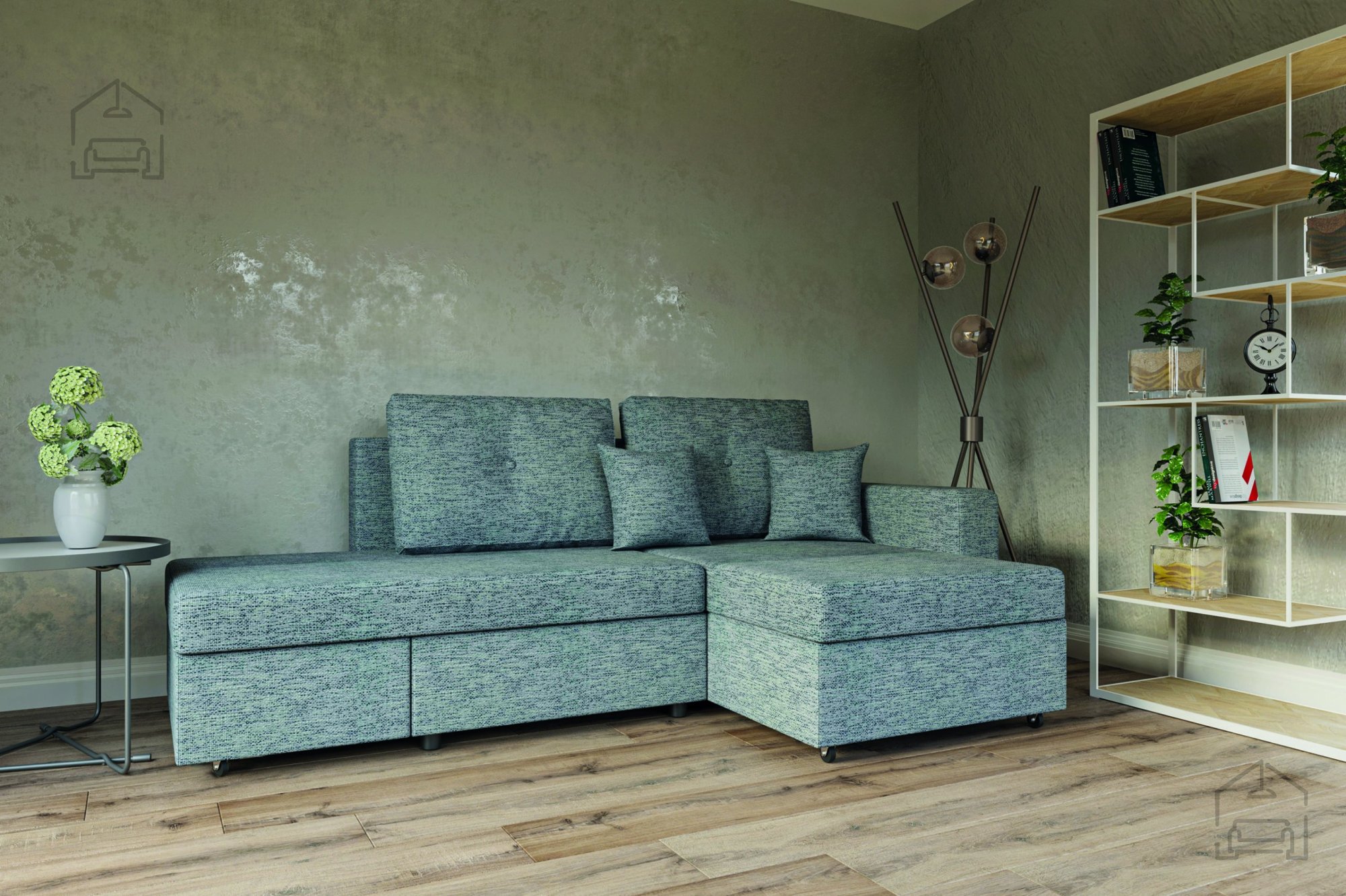 Moderen stil s praktičnostjo: garnitura se ponaša s sodobnim stilom, ki bo popestril vsak prostor. Njena zasnova omogoča enostavno preoblikovanje v ležišče z mehanizmom Dolphin, kar je idealno za goste ali družinske večere pred televizijo.
