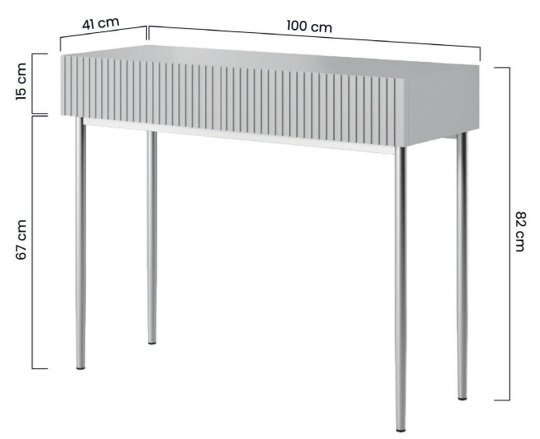 Praktisch im Alltag: Mit den Maßen 100x41x82 cm passt der Tisch ideal in jedes Schlafzimmer oder Ankleidezimmer. Zwei großzügige Schubladen bieten genügend Platz, um Make-up, Schmuck und persönliche Dinge ordentlich zu verstauen.