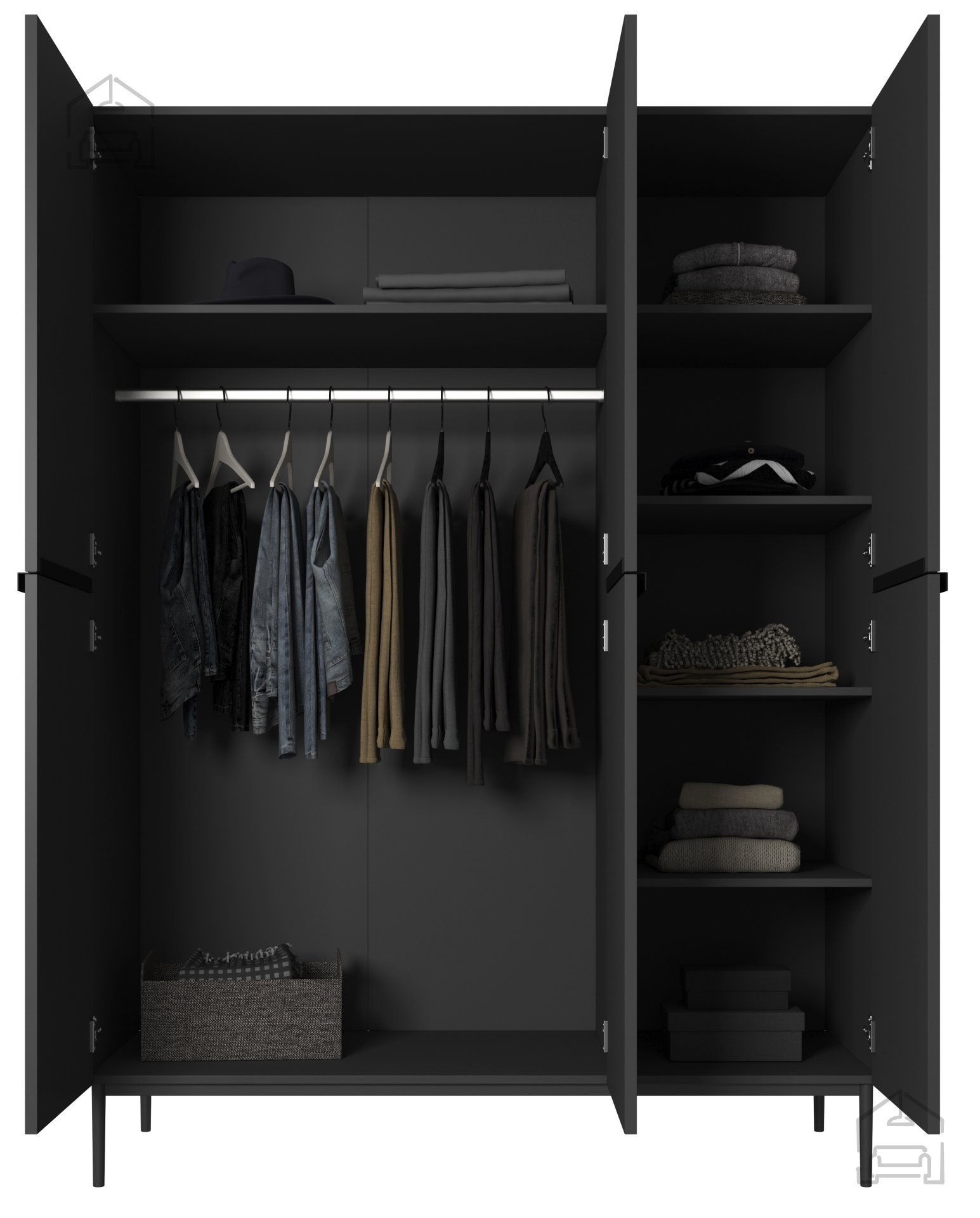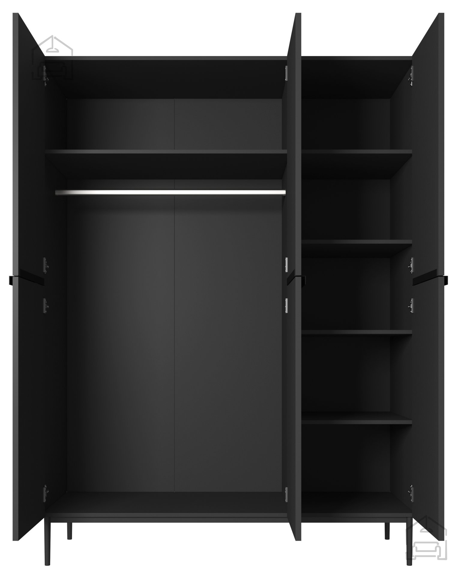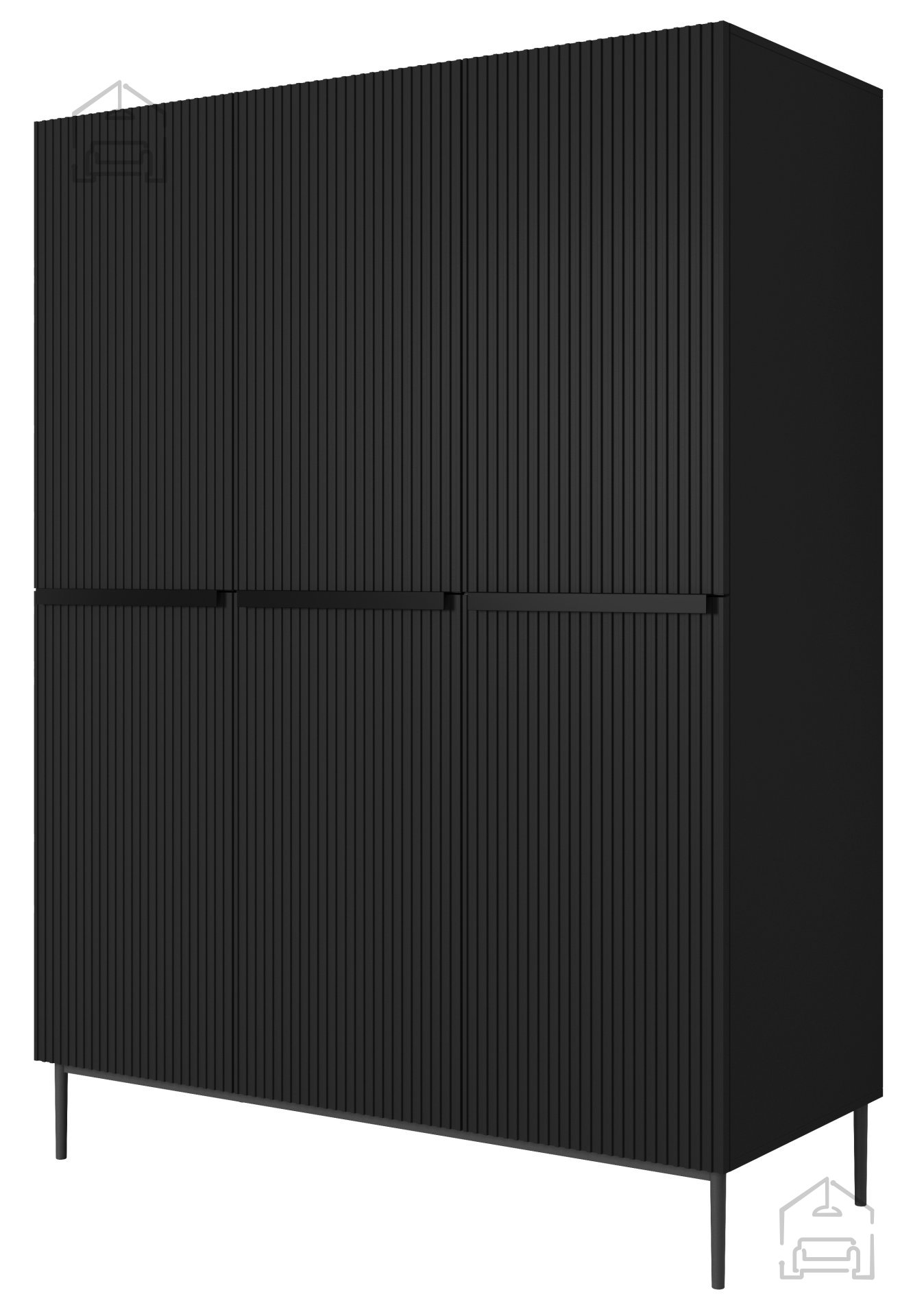 Der Kleiderschrank Nicole 150 3D in Schwarz ist weit mehr als nur ein Aufbewahrungsort für Kleidung – er ist ein stilvolles Möbelstück, das modernes Design mit praktischer Nutzung verbindet. Mit seinen Maßen von 150x62x220 cm nutzt er den vorhandenen Raum optimal und verleiht jedem Schlafzimmer einen Hauch von Luxus.