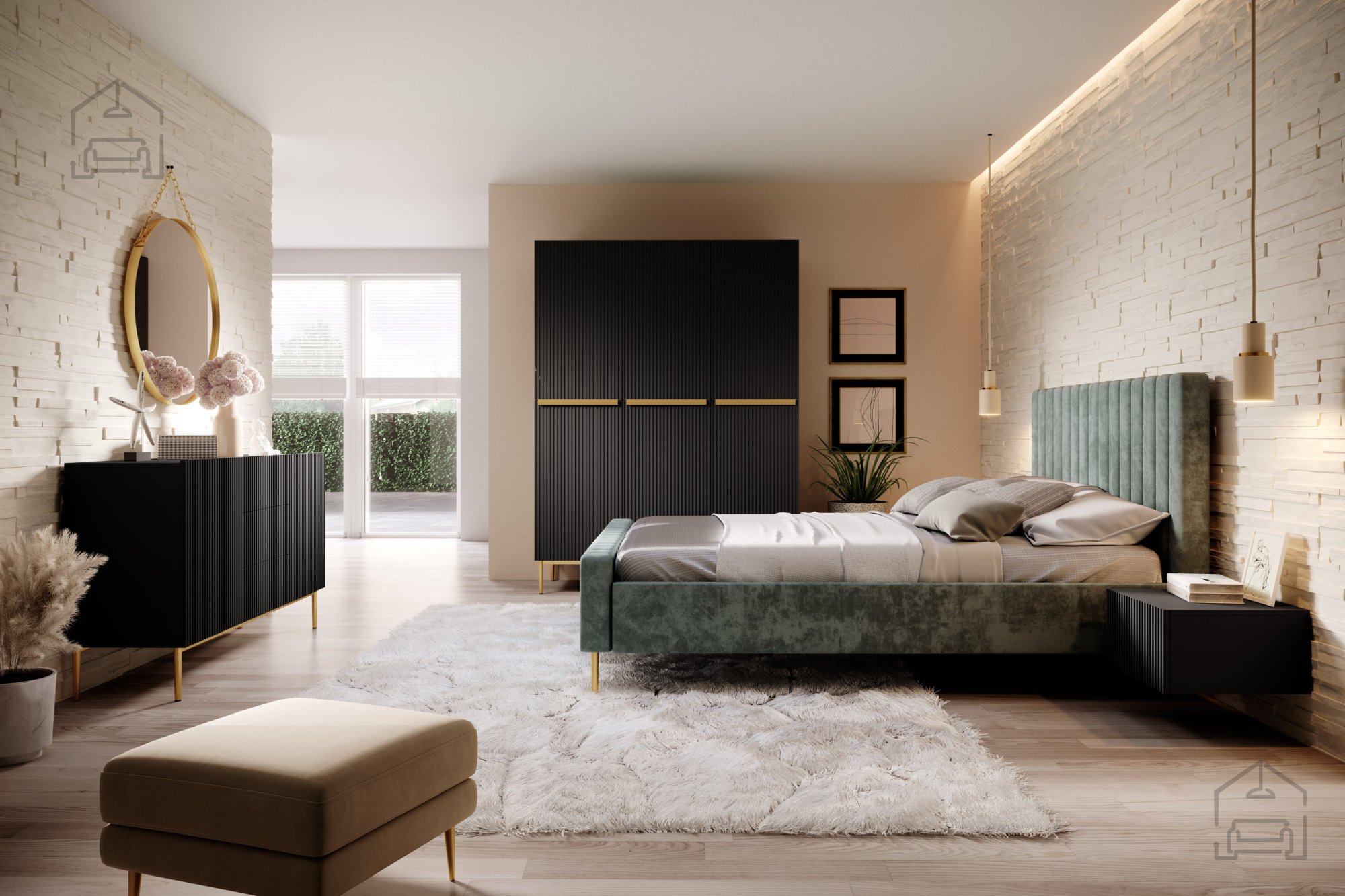 Das schöne, gerippte Muster auf den Fronten des Schranks Nicole sorgt für eine interessante Struktur, zieht die Blicke auf sich und verleiht dem Raum mehr Tiefe. Dank der Push-to-Open-Funktion lässt sich der Schrank mühelos öffnen – ganz ohne Griffe – und überzeugt mit seiner glatten, modernen Oberfläche.