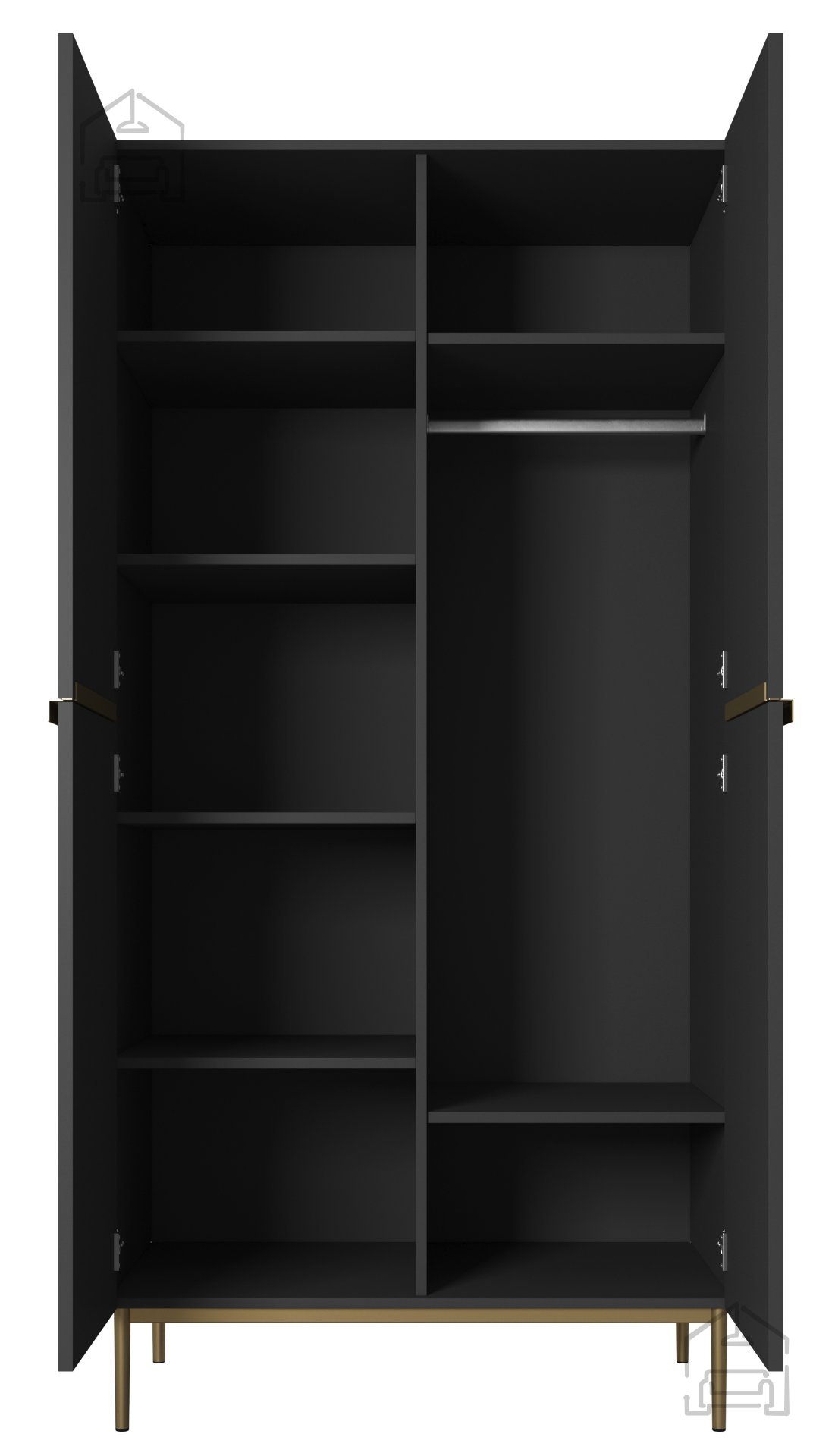 Feine Details: Metallfüße in Schwarz oder Gold mit hoher Stabilität und stilvollem Look verleihen dem Schrank eine besondere Raffinesse.