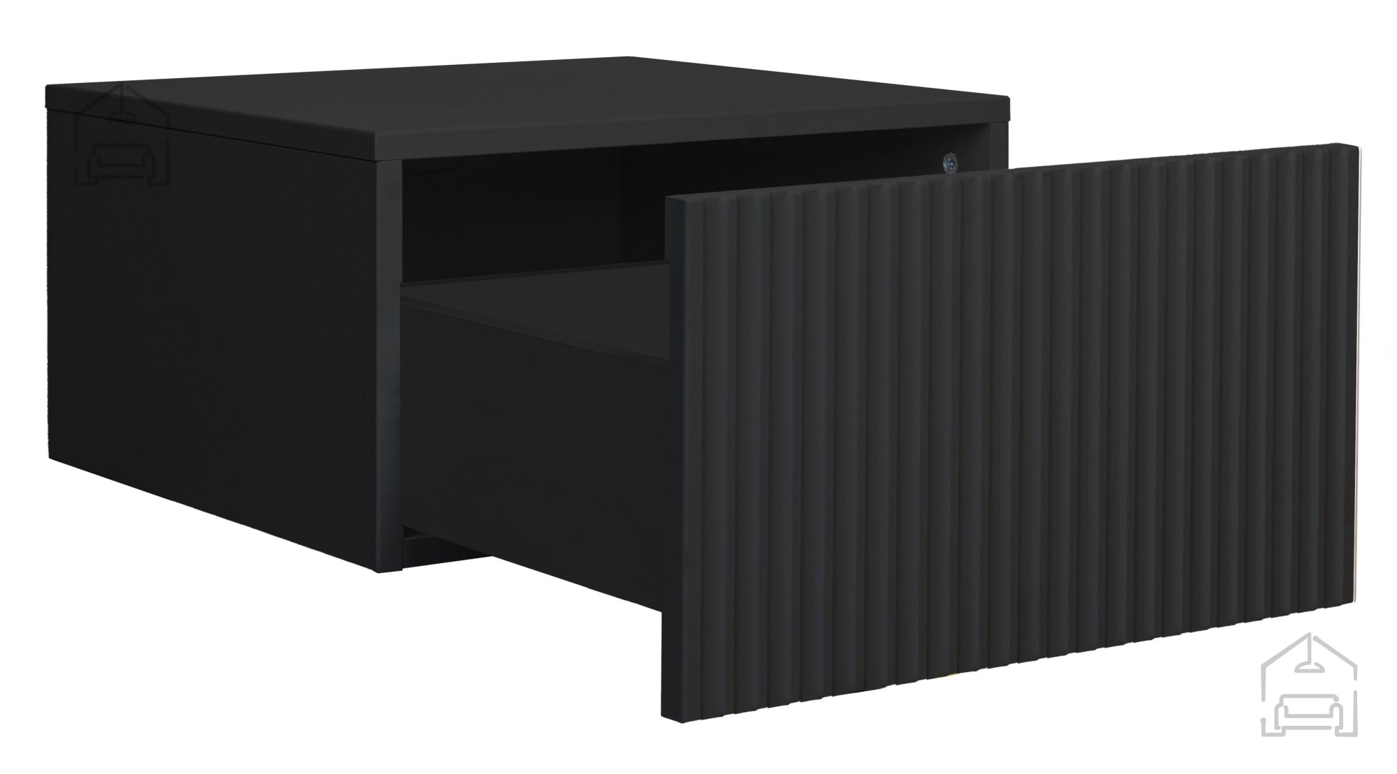 Unsere Wand-Nachtkästchen werden aus einer hochwertigen Möbelplatte mit 16 mm Stärke gefertigt, was Stabilität und Langlebigkeit garantiert. Kanten aus ABS-Material bieten zusätzlichen Schutz und ein sauberes Erscheinungsbild, während die Rückwand aus HDF-Platte für besondere Robustheit sorgt. Ein markantes Merkmal dieses Modells ist die vertikal strukturierte, gerippte Front – ein moderner Blickfang, der dem Möbelstück eine besondere Note verleiht.