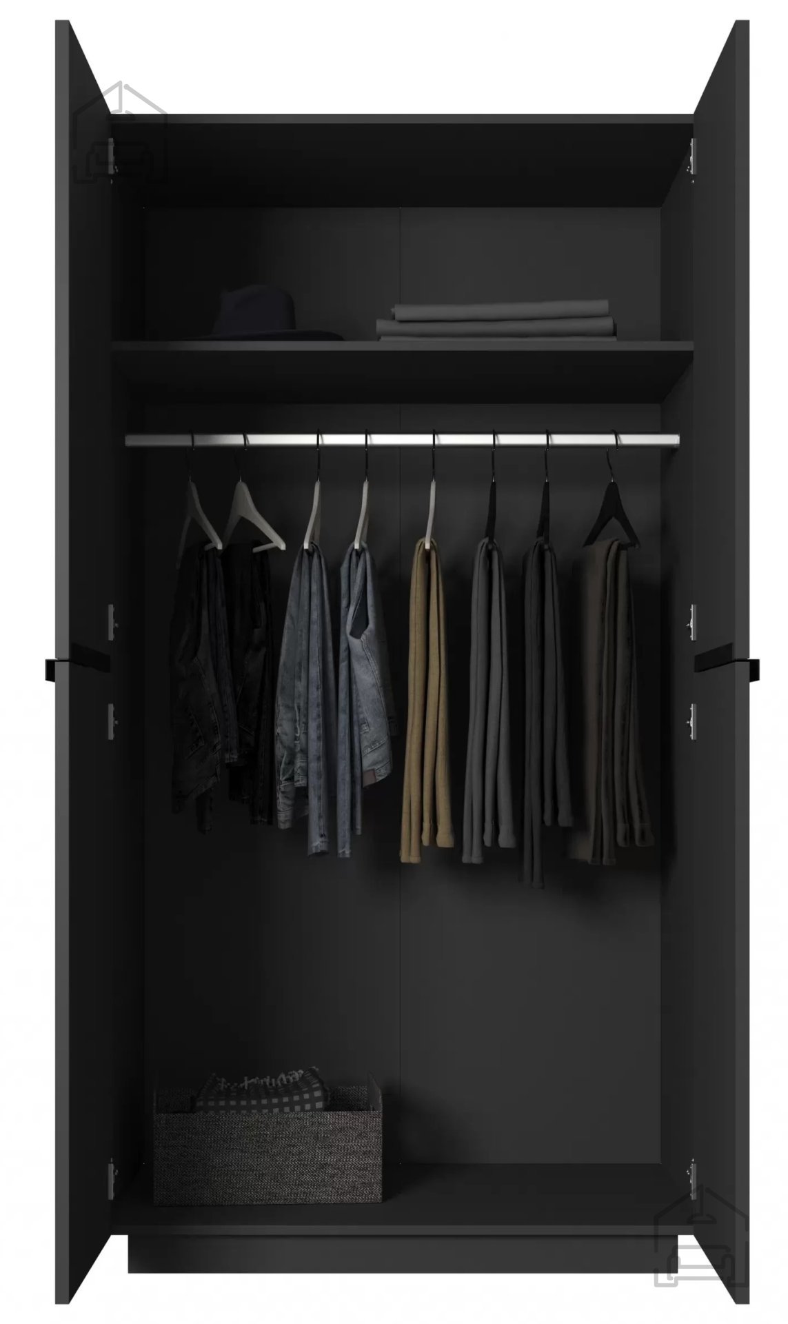 Tauchen Sie ein in die Welt von Eleganz und Funktionalität mit unserem außergewöhnlichen Kleiderschrank Nicole 100 2DP in Schwarz. Dieser Schrank ist weit mehr als nur ein Aufbewahrungsmöbel – er ist ein echtes Schmuckstück für Ihr Schlafzimmer oder Ihren Vorraum. Gefertigt mit Präzision und Leidenschaft in der Bogart-Fabrik in Bosnien, verbindet er modernes Design mit erstklassiger Qualität.