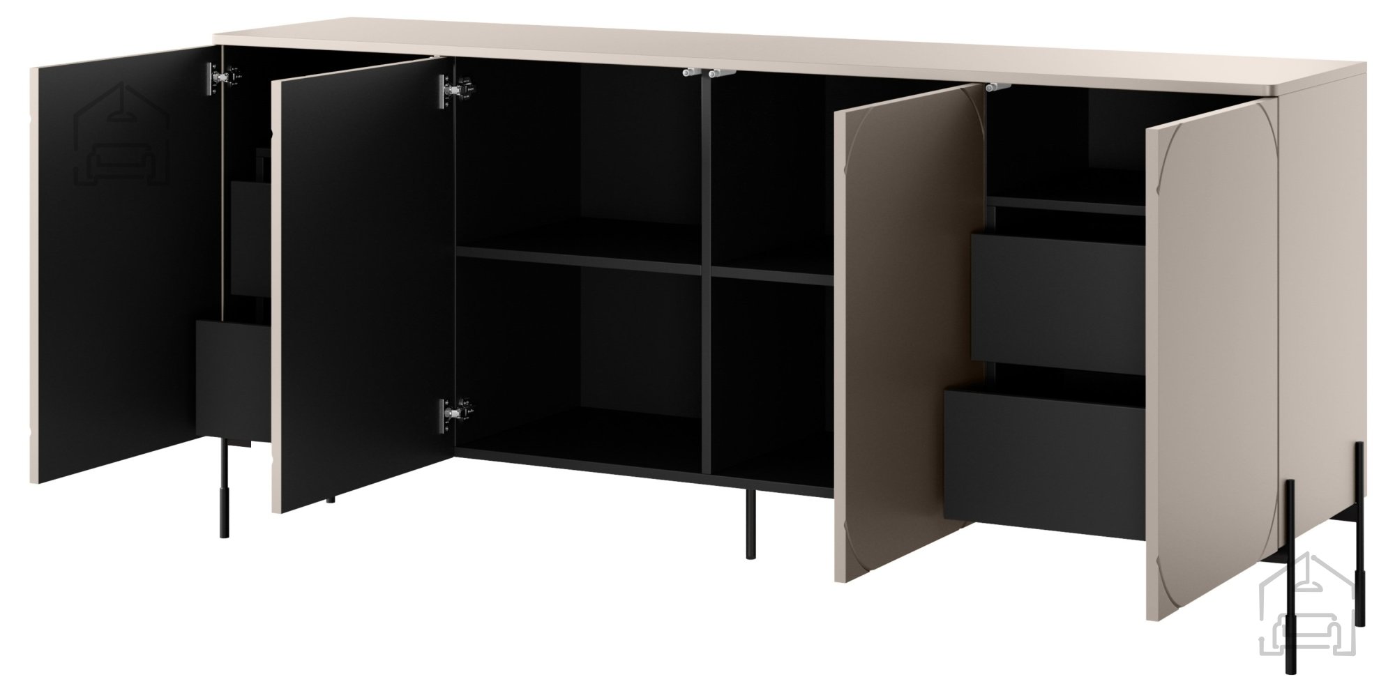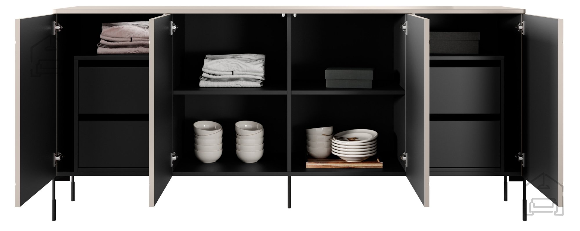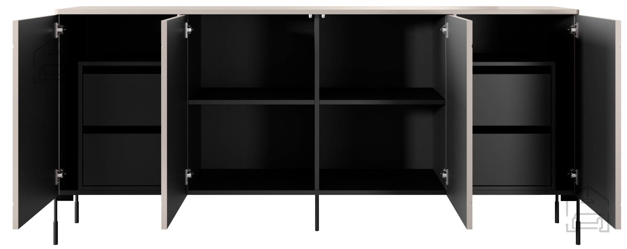 Farbe: Korpus, Einlegeböden und mittlere Elemente sind in klassischem Schwarz gehalten und harmonieren perfekt mit dem sanften Kaschmir-Ton – eine elegante und ausgewogene Farbkombination.