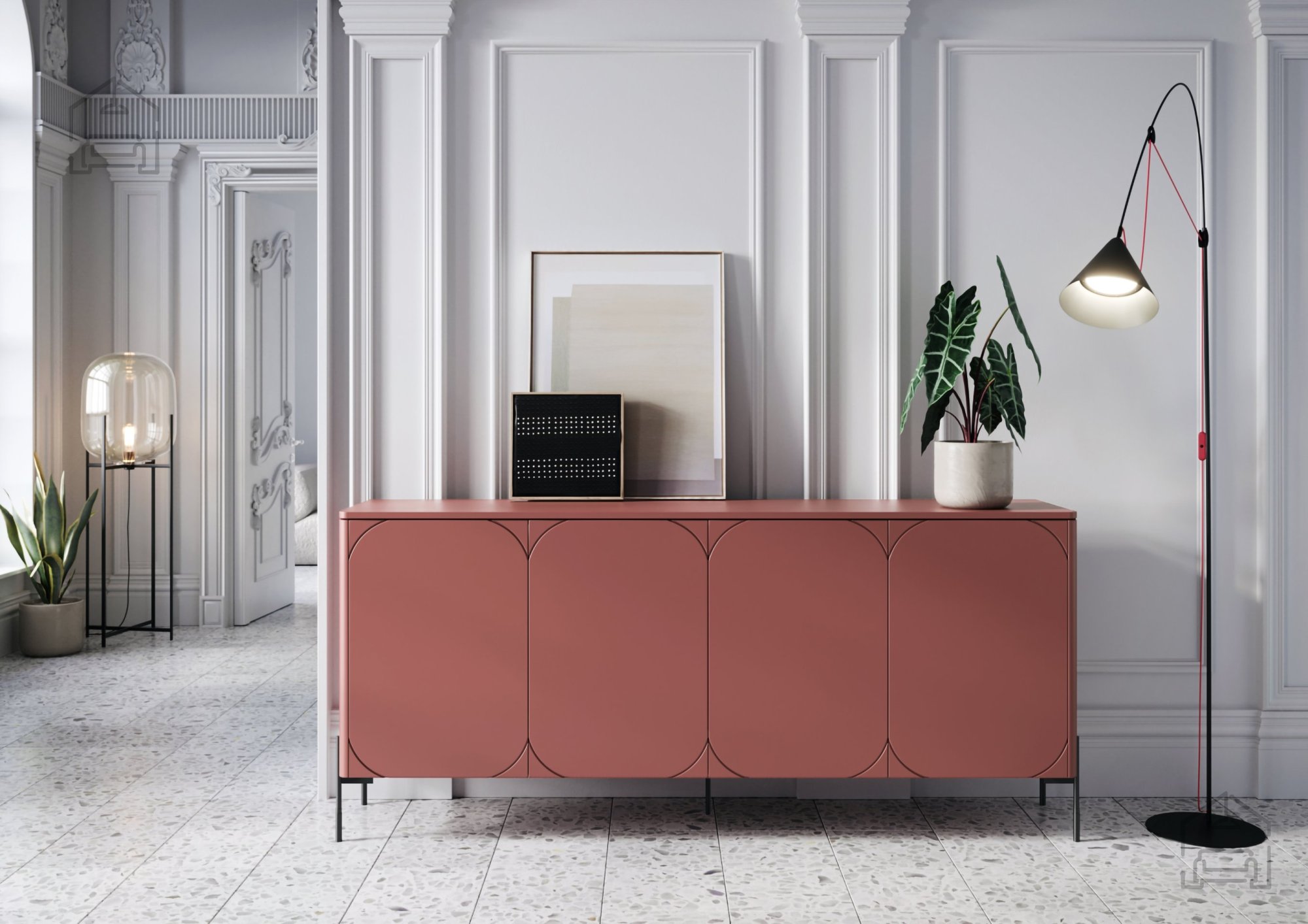 Die Kommode Sonatia 200 4D2SZ in edlem Burgunderrot ist weit mehr als nur ein Möbelstück – sie vereint Stil und Praktikabilität und bereichert jeden Wohnraum. Mit ihren Maßen von 204x45x90 cm bietet sie großzügigen Stauraum und verleiht Ihrem Zuhause gleichzeitig einen Hauch von Eleganz.