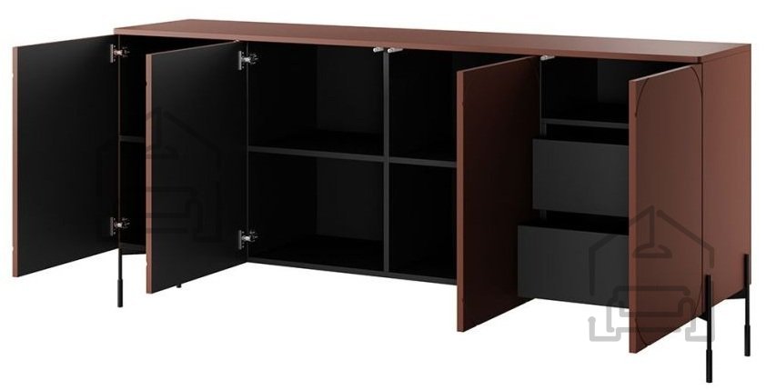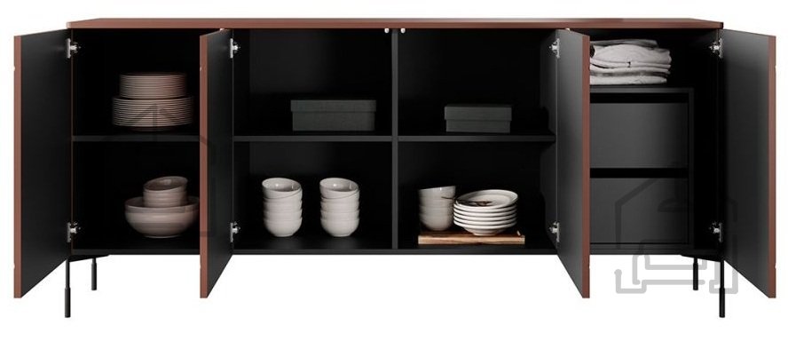 Die Kommode Sonatia 200 4D2SZ ist die perfekte Wahl für alle, die Schönheit und Funktionalität verbinden möchten. Mit vier Türen und zwei geräumigen Laden bietet sie reichlich Platz für Kleidung, Bücher oder andere Gegenstände. Die 3 mm starke Rückwand aus schwarzer HDF-Platte sorgt zusätzlich für Stabilität und Festigkeit.