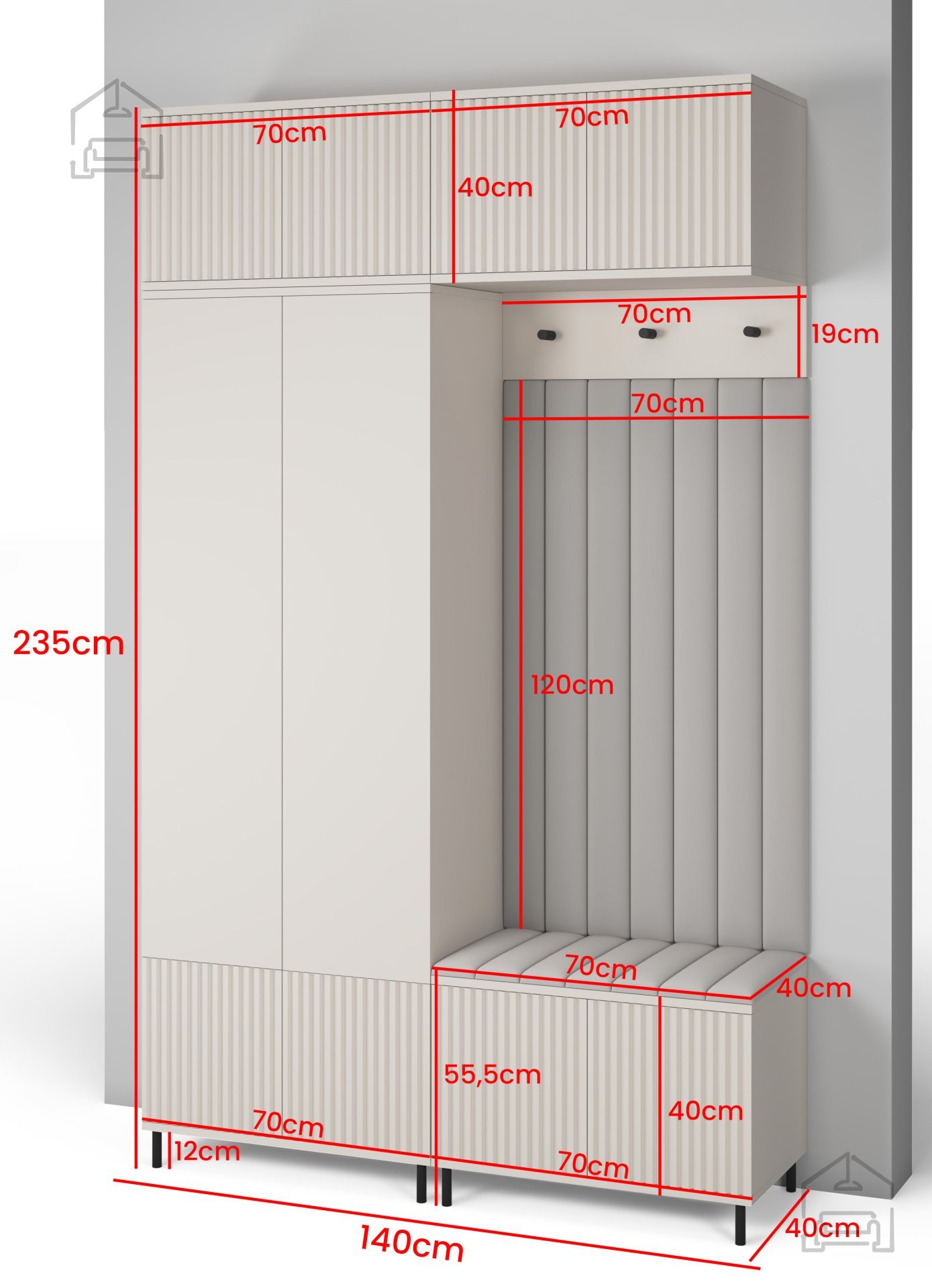 Ko vstopite v svoj dom, želite občutiti toplino in dobrodošlico. Komplet za hodnik Rayo 2 je popolna izbira za vse, ki cenijo prefinjenost in praktičnost v enem. S svojimi dimenzijami 140x40x235 cm vam ta komplet ponuja dovolj prostora za shranjevanje, hkrati pa doda estetski pridih vašemu vhodnemu prostoru.