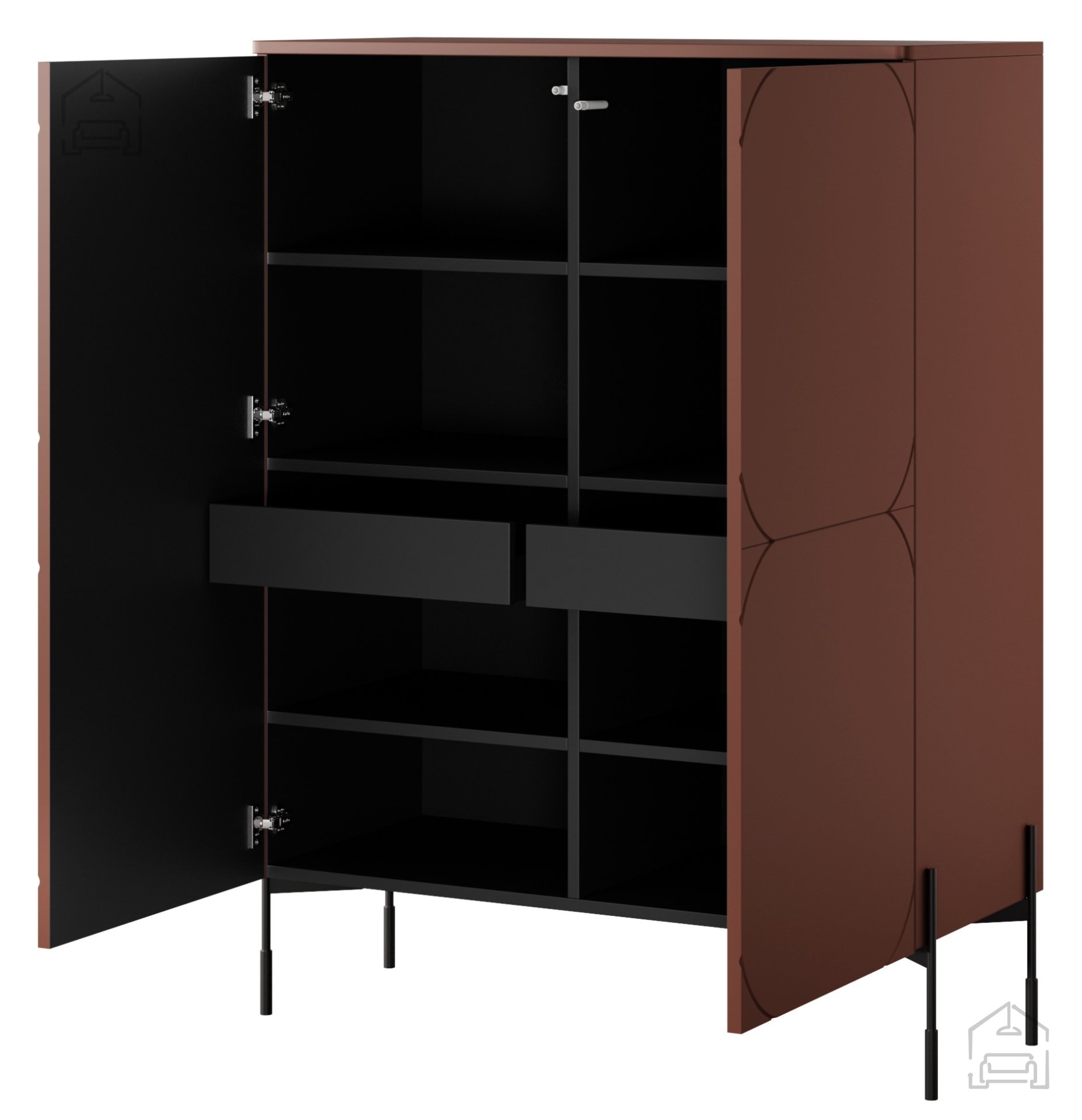 Entdecken Sie die perfekte Verbindung von Stil und Zweckmäßigkeit mit unserer wunderschönen Kommode Sonatia 120 2D2SZ in edlem Burgunderrot. Dieses Möbelstück wird garantiert zum Blickfang in Ihrem Zuhause, denn es vereint modernes Design mit hoher Funktionalität.