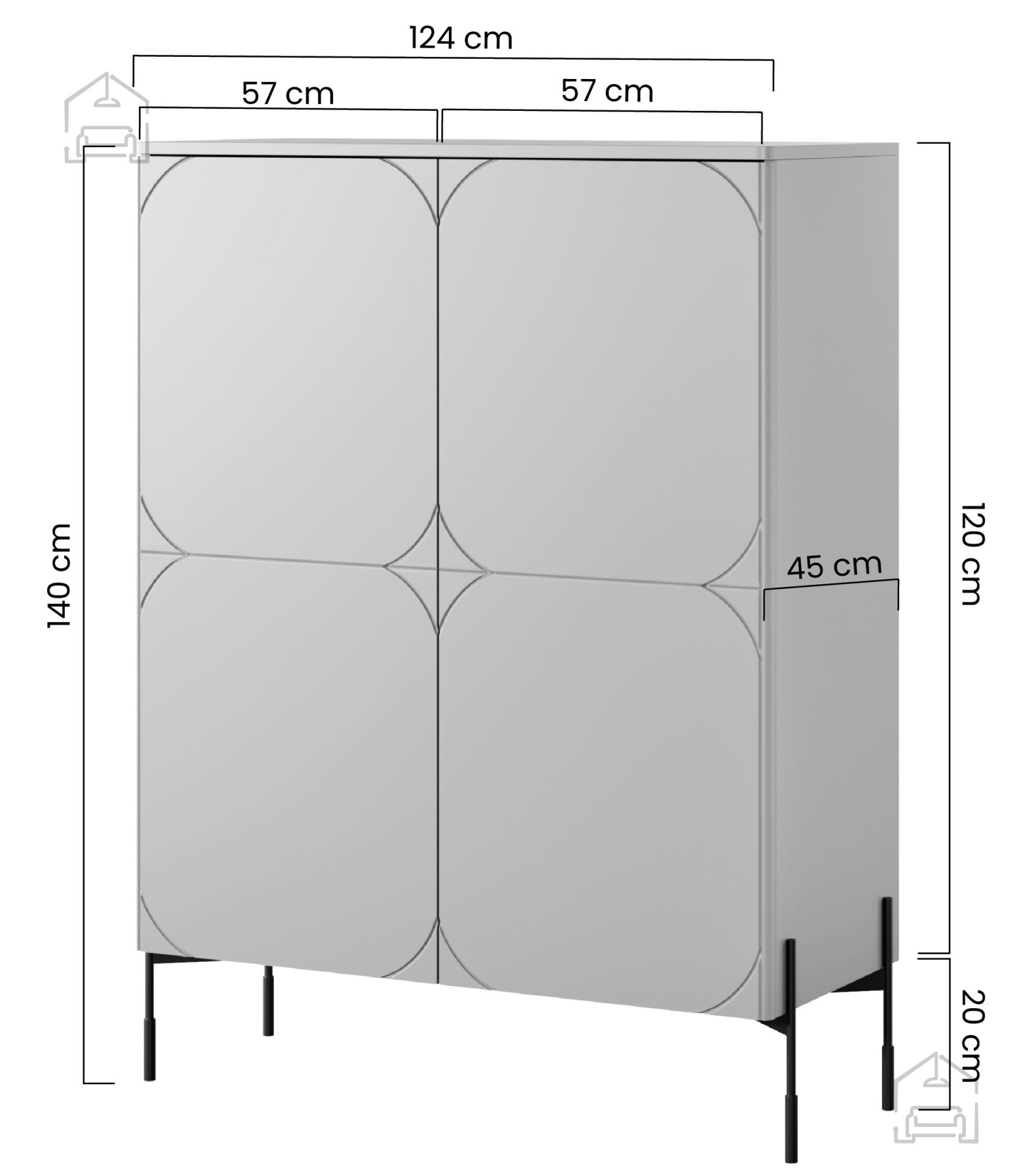 Die Kommode Sonatia 120 2D2SZ ist nicht nur optisch ein Highlight, sondern auch äußerst praktisch. Mit ihren Maßen von 124x45x140 cm bietet sie großzügigen Stauraum und hilft, Ihr Zuhause ordentlich und stilvoll zu gestalten. Zwei geräumige Schränke und zwei Schubladen ermöglichen eine flexible Aufbewahrung – von Kleidung bis hin zu Dekoartikeln.