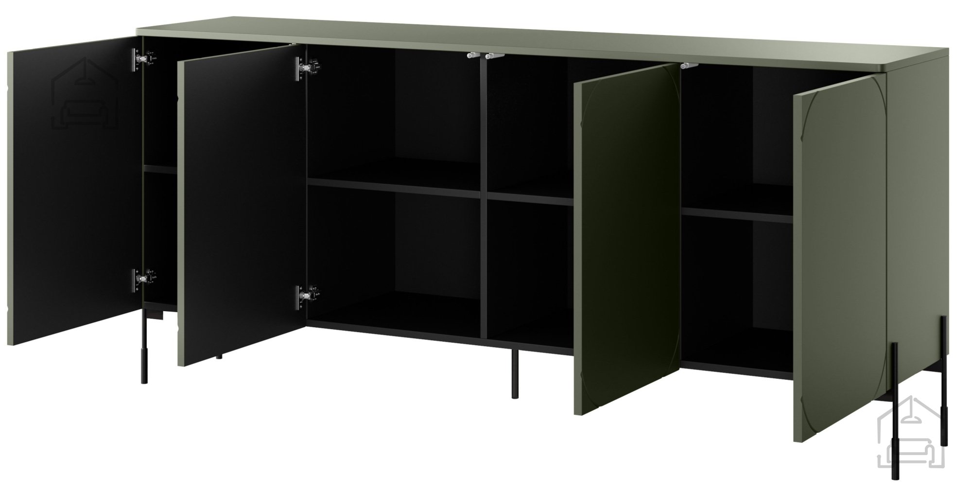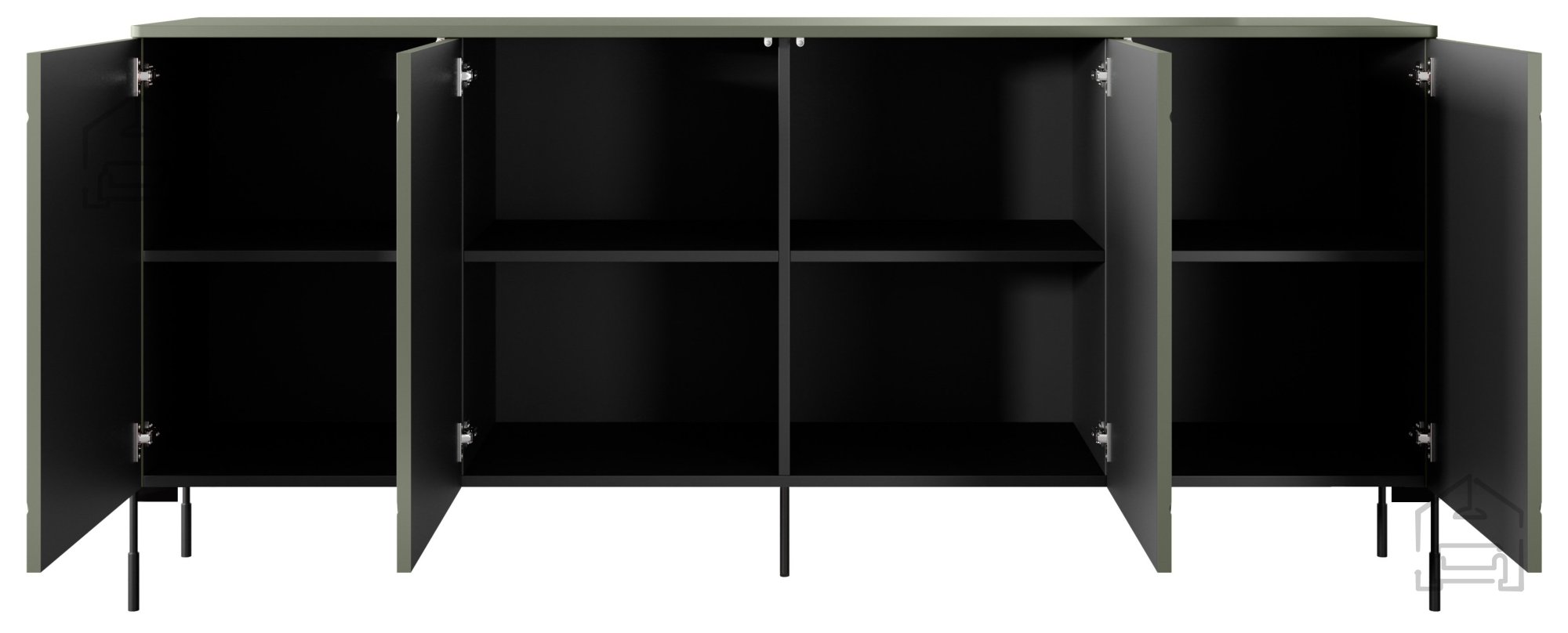 Verleihen Sie Ihrem Zuhause mit der Kommode Sonatia 200 4D einen Hauch von Stil und Raffinesse. Das moderne Design und die durchdachte Funktionalität bringen frischen Schwung in Ihr Wohnambiente. Mit ihrer olivgrünen Farbgebung setzt diese Kommode einen edlen Akzent in jedem Raum – ob im Wohnzimmer, Schlafzimmer oder Flur – und hebt Ihre Einrichtung auf ein neues Niveau.