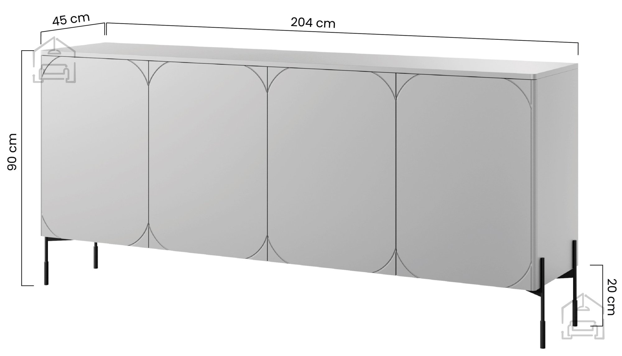 Die Kommode Sonatia überzeugt nicht nur durch ihr Aussehen, sondern auch durch ihre durchdachte Funktionalität. Mit den Maßen 204x45x90 cm bietet sie großzügigen Stauraum, um Ihre Gegenstände stilvoll und ordentlich zu verstauen. Vier Türen und zwei Schubladen mit Soft-Close-Mechanismus sorgen für leises und komfortables Schließen, während das Push-to-Open-System die Handhabung besonders einfach und modern macht.
