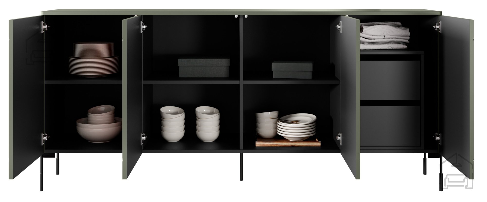 Elegantes Design: Das Zusammenspiel von Olivgrün und schwarzen Akzenten verleiht Ihrem Raum eine edle und moderne Note.