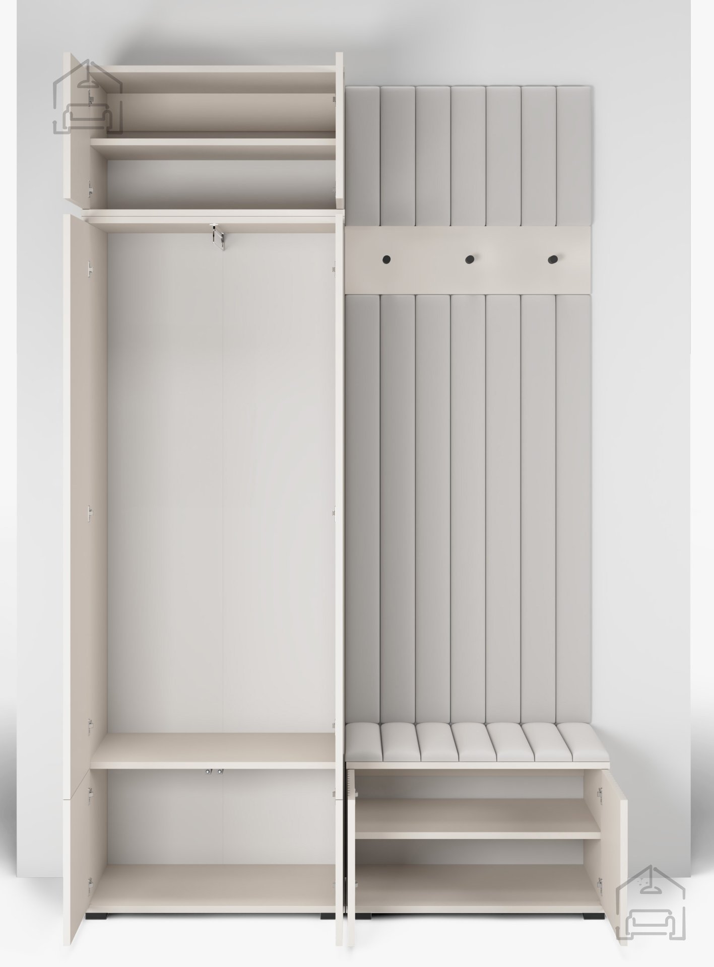Innovative Systeme: Sowohl der Schrank als auch der Schuhschrank sind mit einem „Push-to-Open“-System ausgestattet, das eine einfache und elegante Nutzung ohne Griffe ermöglicht.