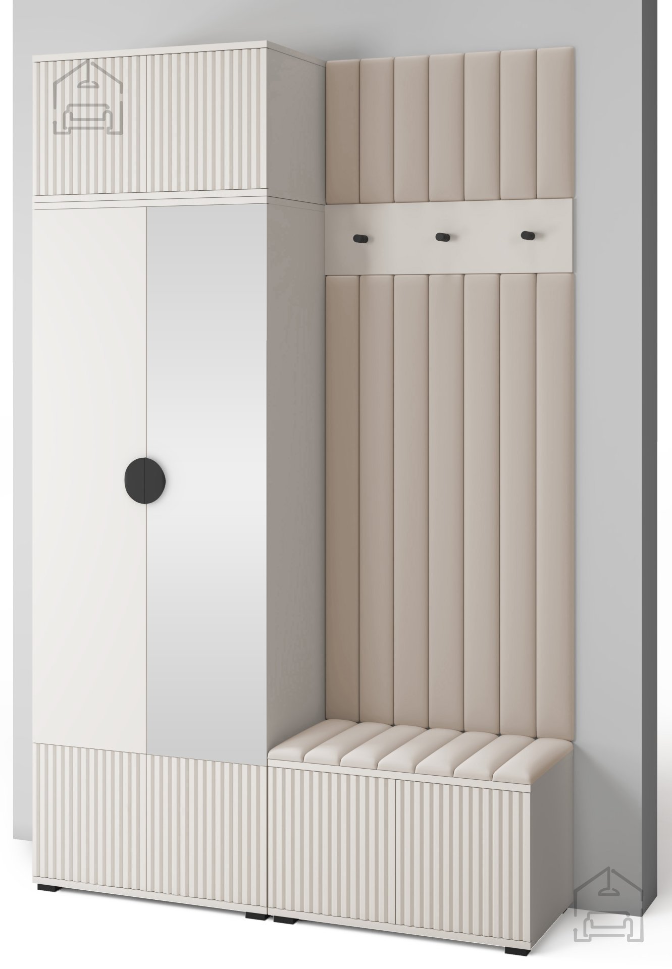 Wenn Sie Ihr Zuhause betreten, ist das Erste, was Ihnen auffällt, der Flur. Das Garderobenset Rayo 4 mit Spiegel ist so konzipiert, dass es Ihrem Raum Eleganz, Funktionalität und Praktikabilität verleiht. Hergestellt aus einer hochwertigen laminierten Platte mit einer Stärke von 16 mm in der raffinierten Farbe Kaschmir, ist dieses Set ideal für moderne Wohnungen, die Ästhetik und Zweckmäßigkeit vereinen.