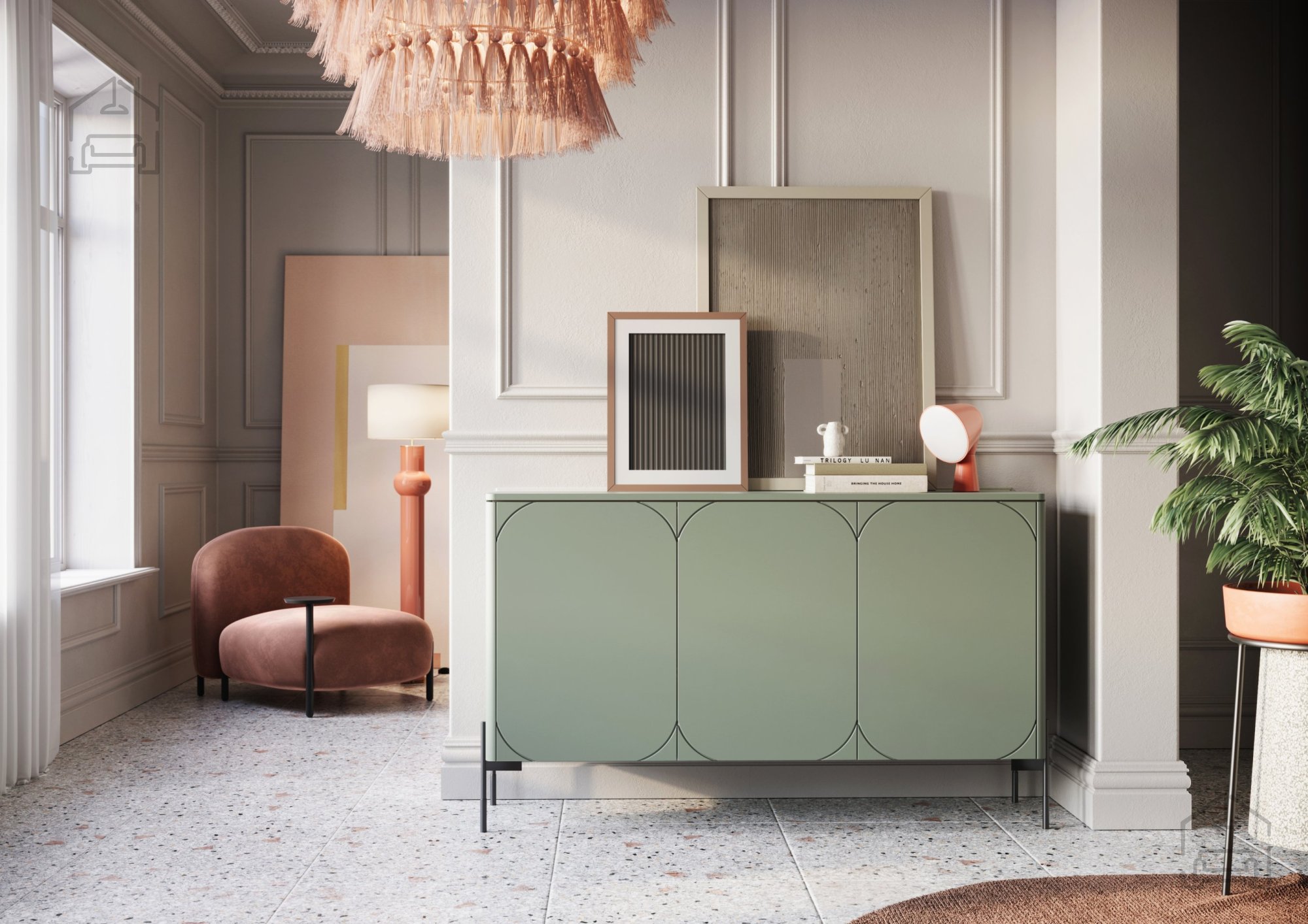 Sind Sie auf der Suche nach einem eleganten und zugleich praktischen Möbelstück, das Ihrem Wohnzimmer einen Hauch von Raffinesse verleiht? Dann ist die Kommode Sonatia 150 3D4SZ in edlem Olivgrün genau das Richtige. Sie vereint stilvolles Design mit hoher Funktionalität – perfekt für moderne Wohnräume, in denen jedes Detail zählt.
