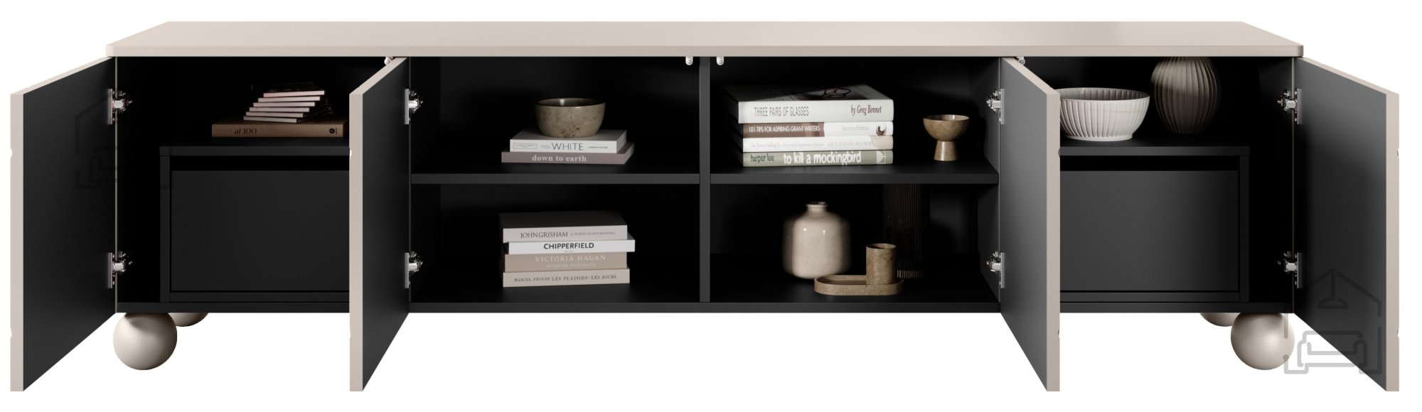 Die TV-Kommode Sonatia II 200 4D2SZ ist die perfekte Wahl für alle, die eine elegante und zugleich praktische Lösung für ihr Wohnzimmer suchen. Mit ihrem zeitlosen Design in Kaschmirfarbe und der hochwertigen Verarbeitung wird dieses Möbelstück garantiert zum Blickfang in Ihrem Zuhause.