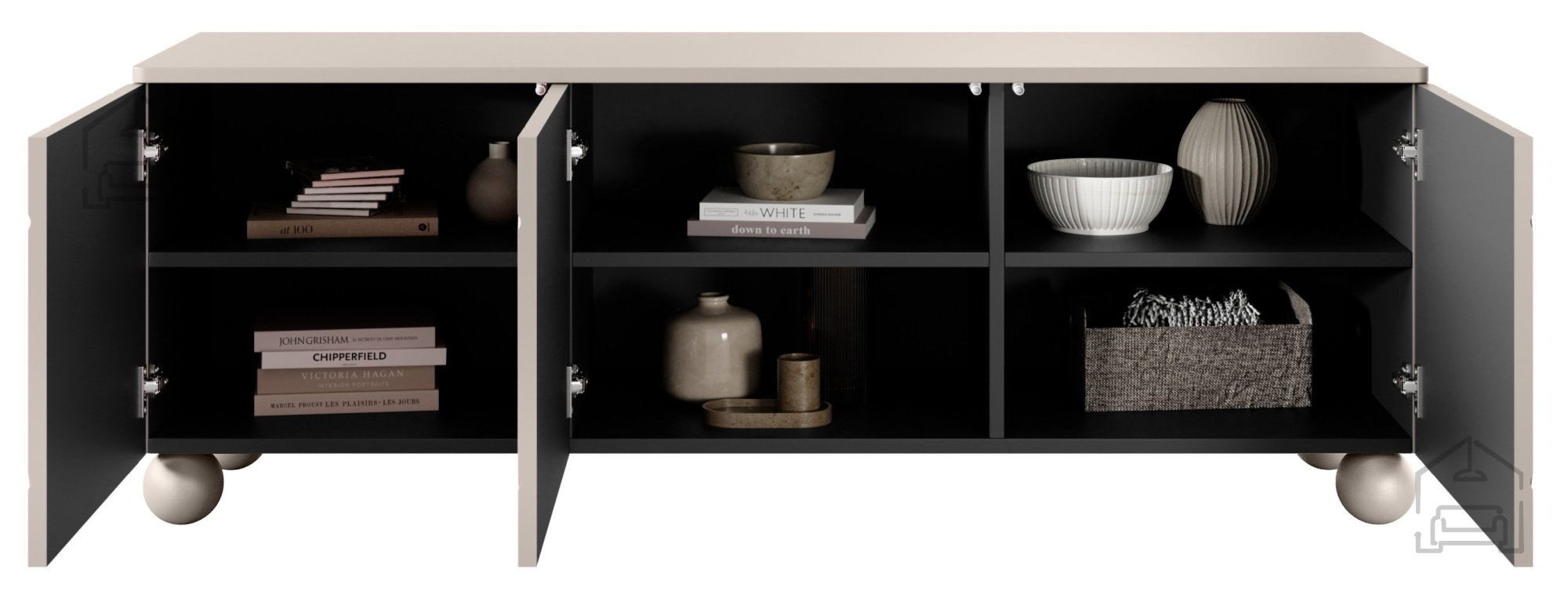 Entdecken Sie die perfekte Balance zwischen modernem Design und praktischer Nutzung mit unserer TV-Kommode Sonatia II 150 3D in edlem Kaschmir-Ton. Dieses Möbelstück ist nicht nur ein stilvolles Highlight für Ihr Wohnzimmer, sondern auch ein funktionaler Mittelpunkt, der Design und Alltagstauglichkeit harmonisch verbindet.