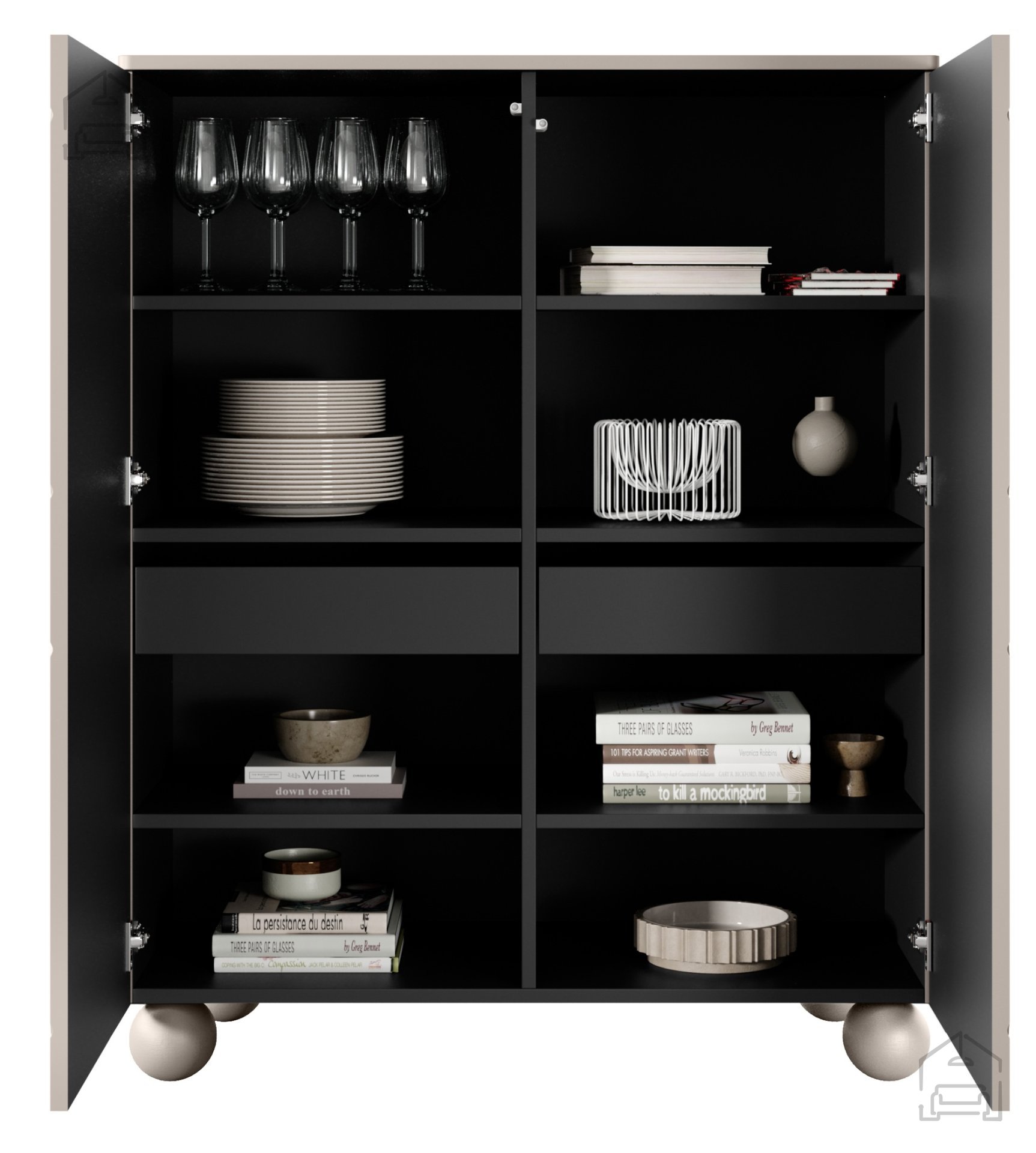 Modernes Design: Die Kombination aus Kaschmirfarbe und schwarzen Akzenten verleiht der Kommode einen modernen, eleganten Look, der in jedes Wohnambiente passt.