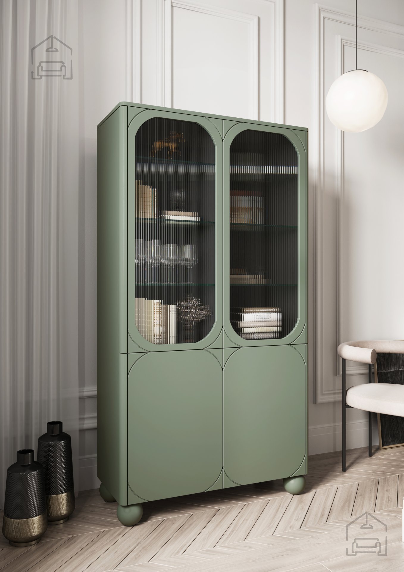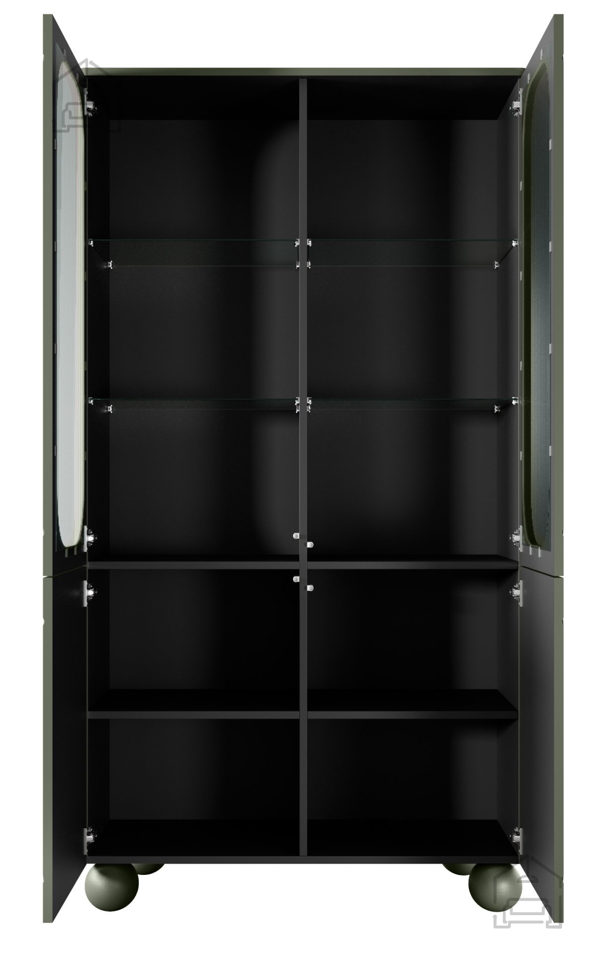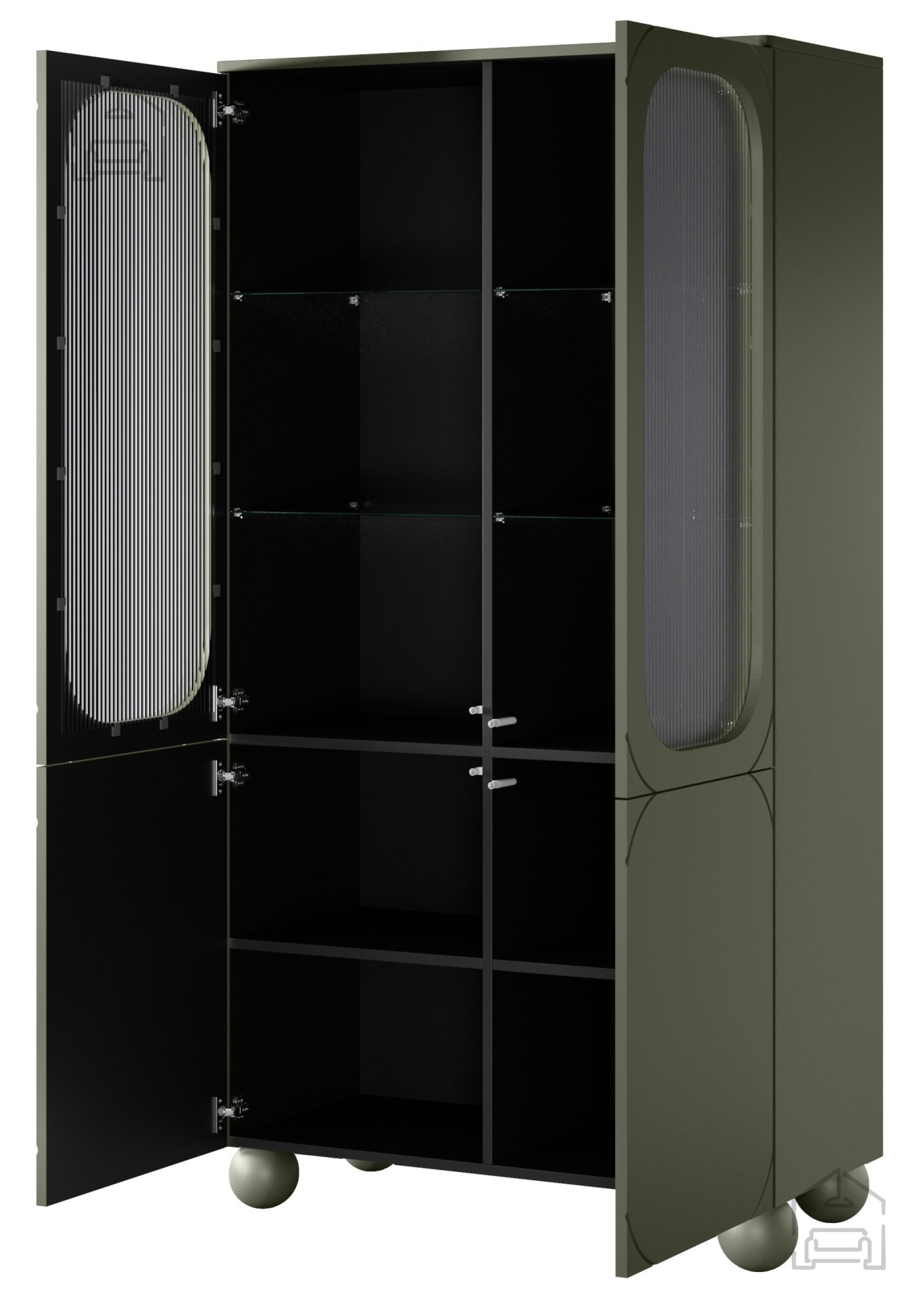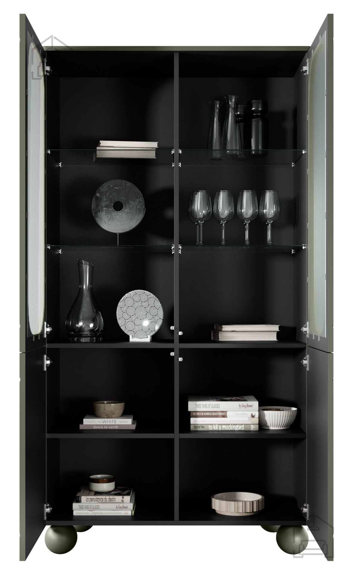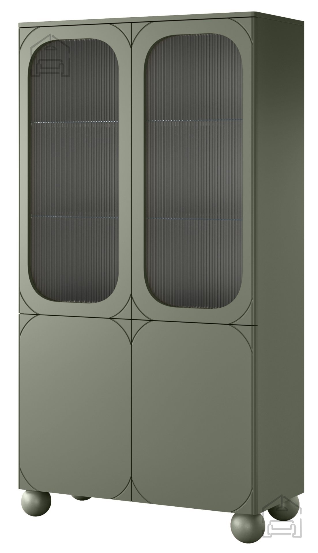 Die Vitrine Sonatia II 100 4D in elegantem Olivgrün ist die perfekte Wahl für alle, die Wert auf eine besondere Kombination aus Funktionalität und Stil legen. Dieses fein gestaltete Möbelstück verleiht Ihrem Zuhause eine moderne und zugleich edle Note, die Sie sonst kaum finden werden.