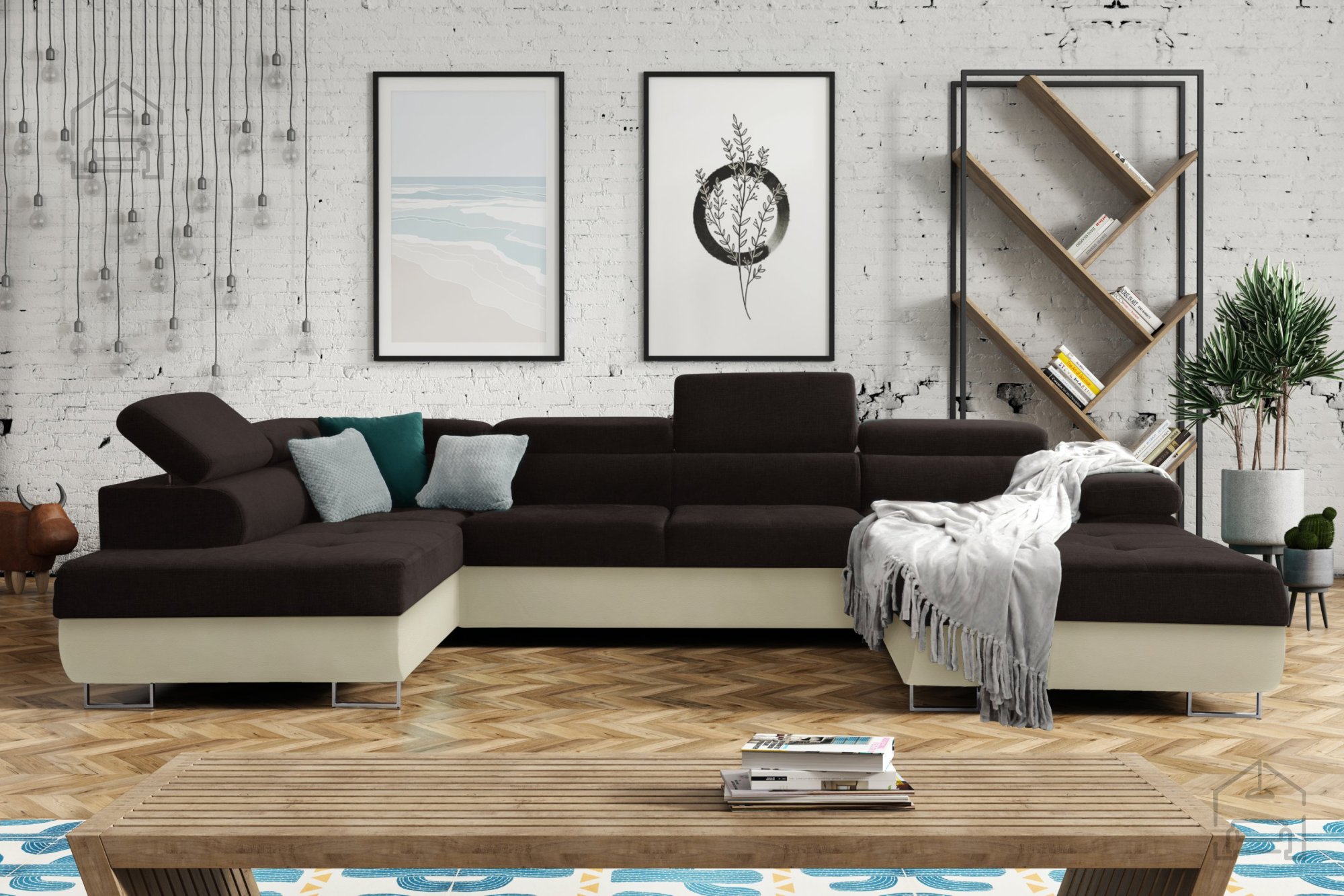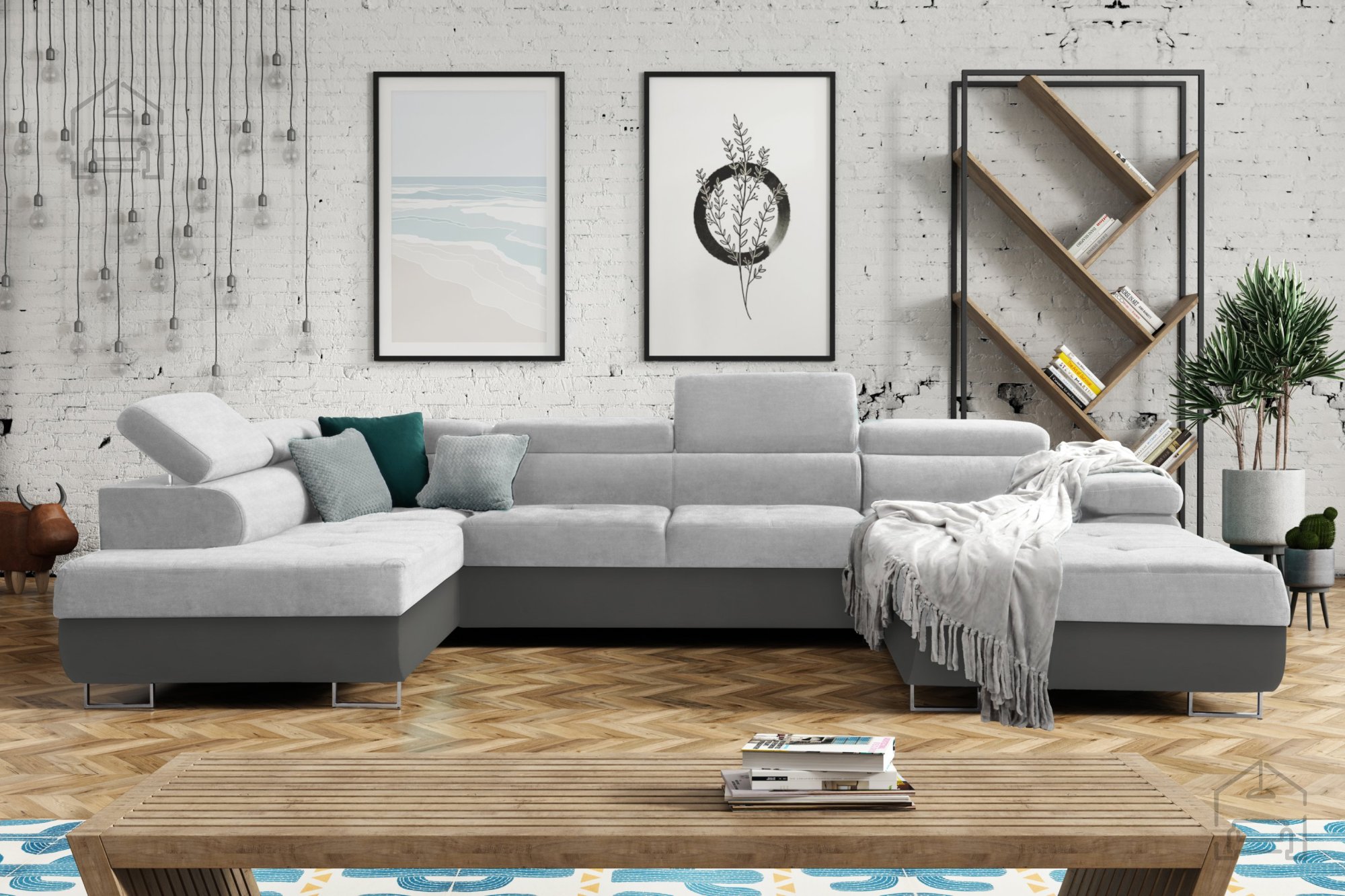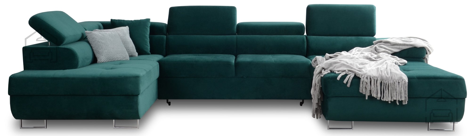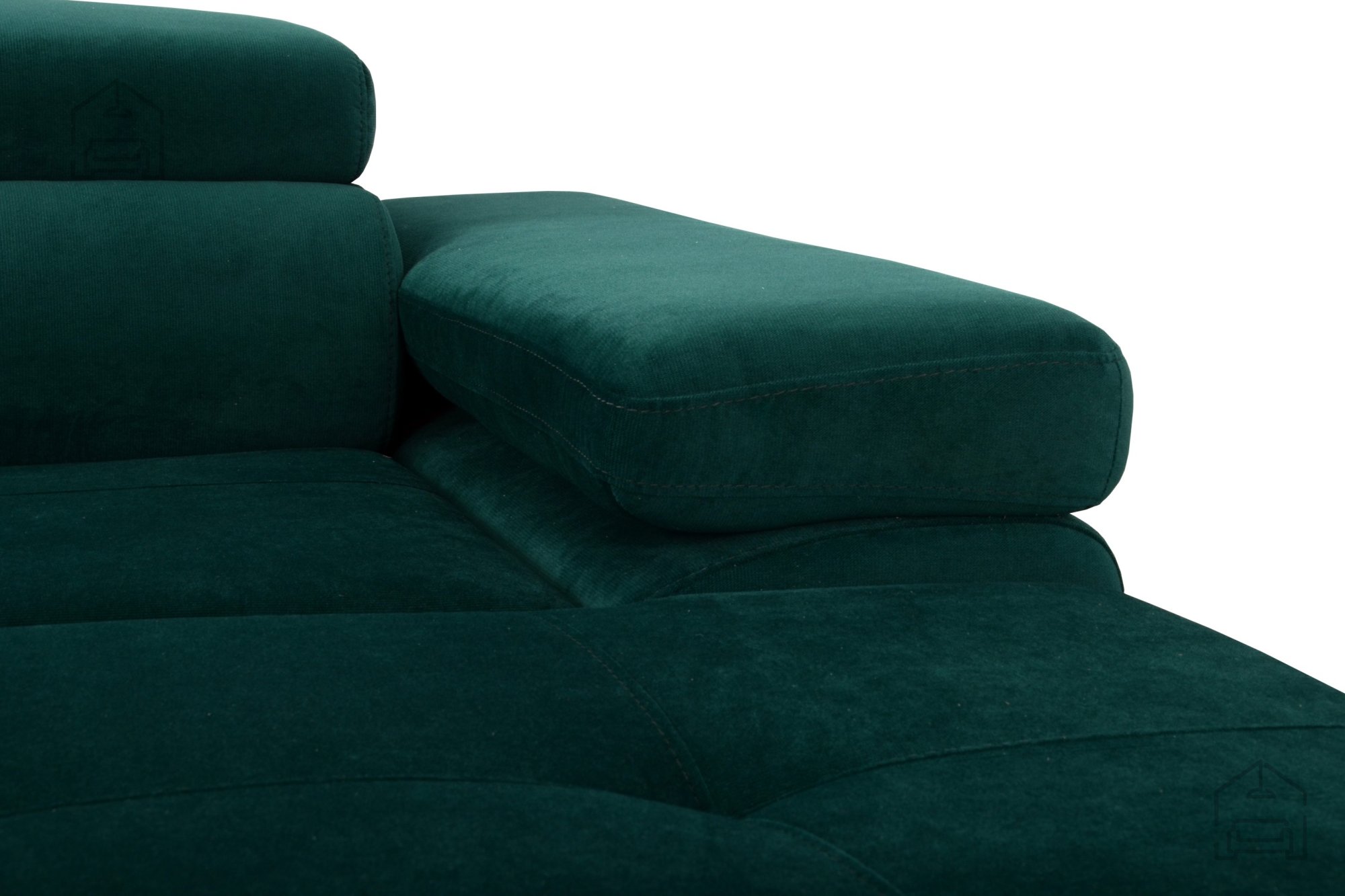 Mit dem innovativen Dolphin-Mechanismus lässt sich die Wohnlandschaft einfach und schnell in ein geräumiges Bett verwandeln. Die Liegefläche von 266x124 cm bietet ausreichend Platz für eine bequeme Übernachtung von Gästen oder zum Entspannen an einem gemütlichen Nachmittag. Verstellbare Kopfstützen ermöglichen eine individuelle Anpassung des Sitzes an Ihre persönlichen Bedürfnisse und erhöhen so zusätzlich den Komfort.