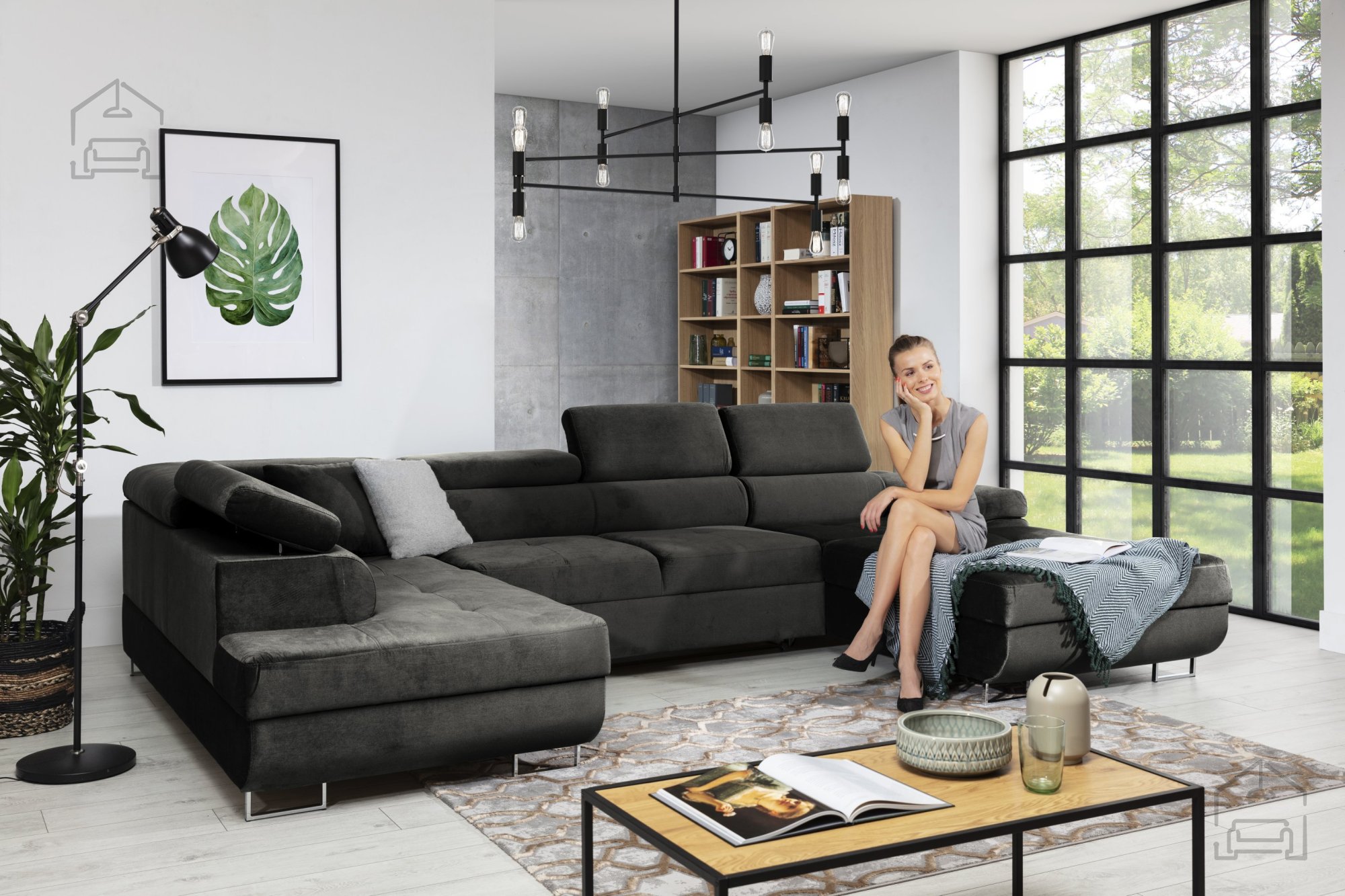 Die Wohnlandschaft Annabelle U II besticht durch ihr elegantes, modernes Design, das jedem Raum einen Hauch von Raffinesse verleiht. Sie ist aus hochwertigen Materialien wie Holz, Spanplatte und Stoff gefertigt, die Langlebigkeit und Beständigkeit gewährleisten. Der beim Modell verwendete Stoff Kronos 19 ist bekannt für seine Abriebfestigkeit und bietet gleichzeitig eine weiche Haptik, die Ihre Sinne verwöhnt.