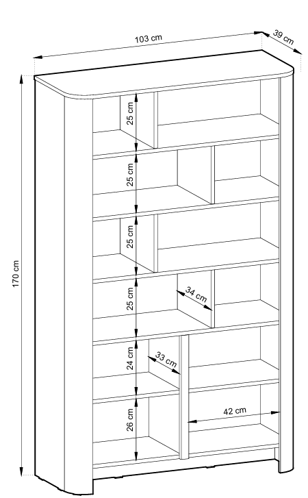 Praktisch und geräumig: Dank der durchdachten Maße bietet der Regal Bari RG103 ausreichend Platz für Bücher, Dekoartikel oder elektronische Geräte. Die klare Struktur ermöglicht eine einfache Organisation und schnellen Zugriff – ideal für den täglichen Gebrauch.
