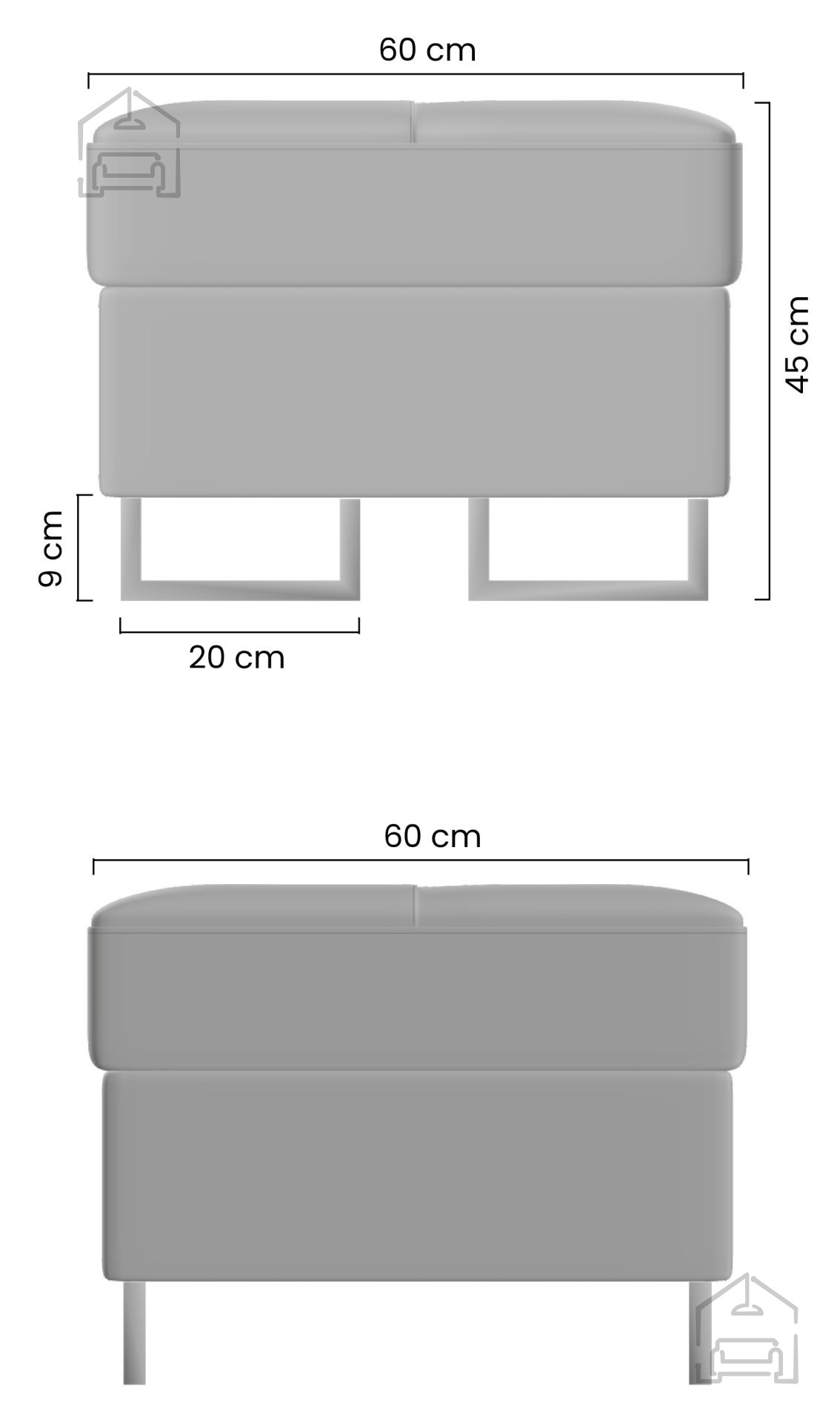 Er ist aus hochwertigen Materialien wie Holz, Spanplatte und Stoff gefertigt, was Langlebigkeit und dauerhaften Gebrauch gewährleistet. Der auf dem Bild gezeigte Stoff Sawana 21 ist bekannt für seine Strapazierfähigkeit und sein angenehmes Gefühl bei der Berührung, was langfristige Zufriedenheit garantiert. Die 9 cm hohen Metallbeine verleihen einen modernen Touch und die Stabilität, die Sie benötigen.