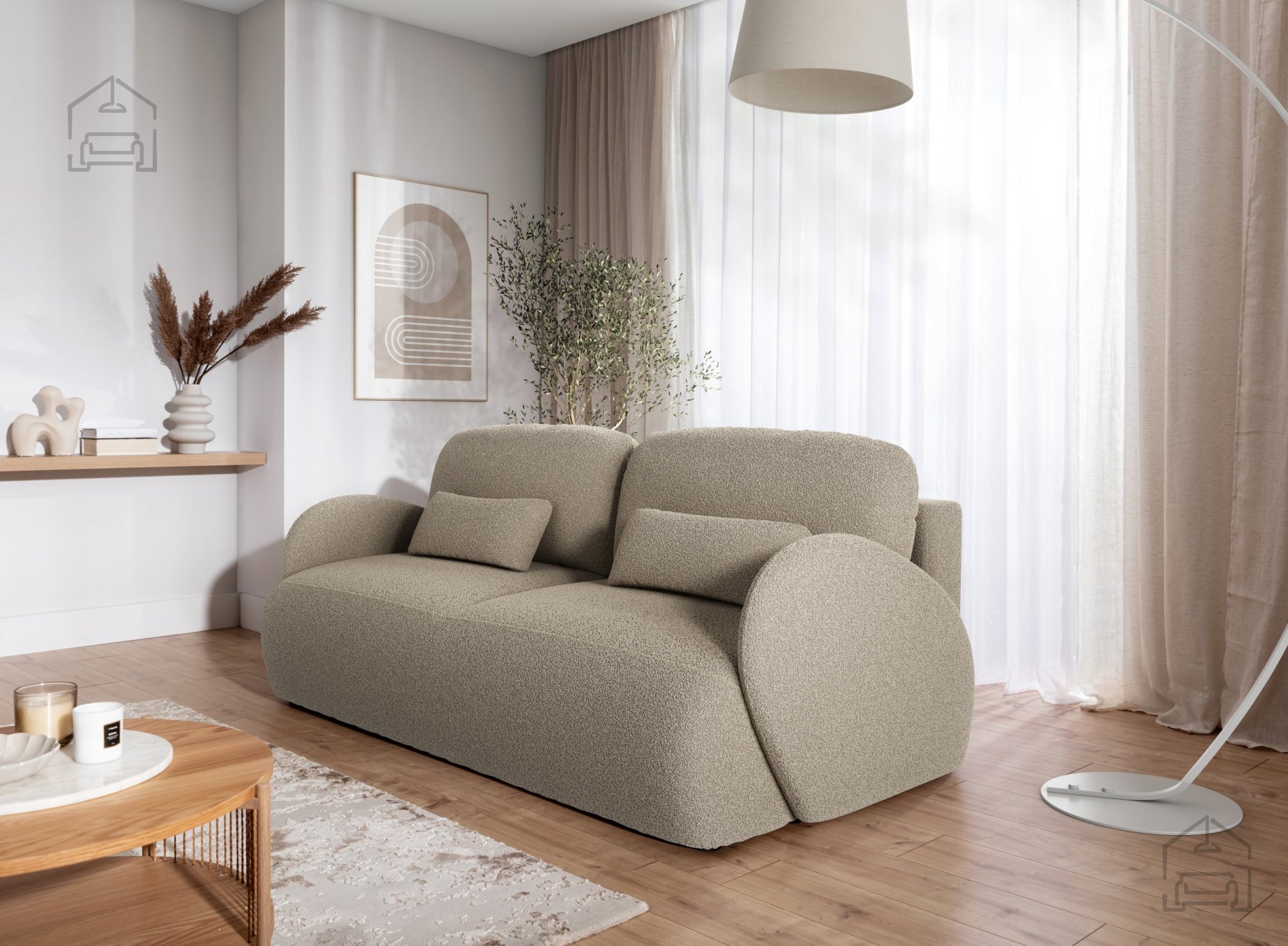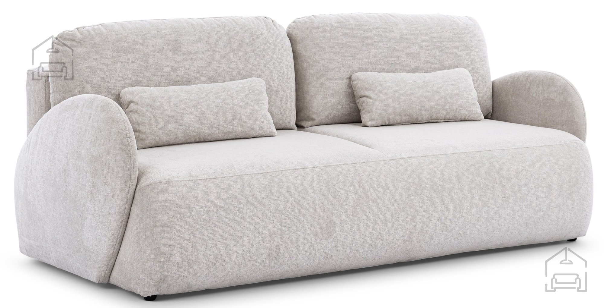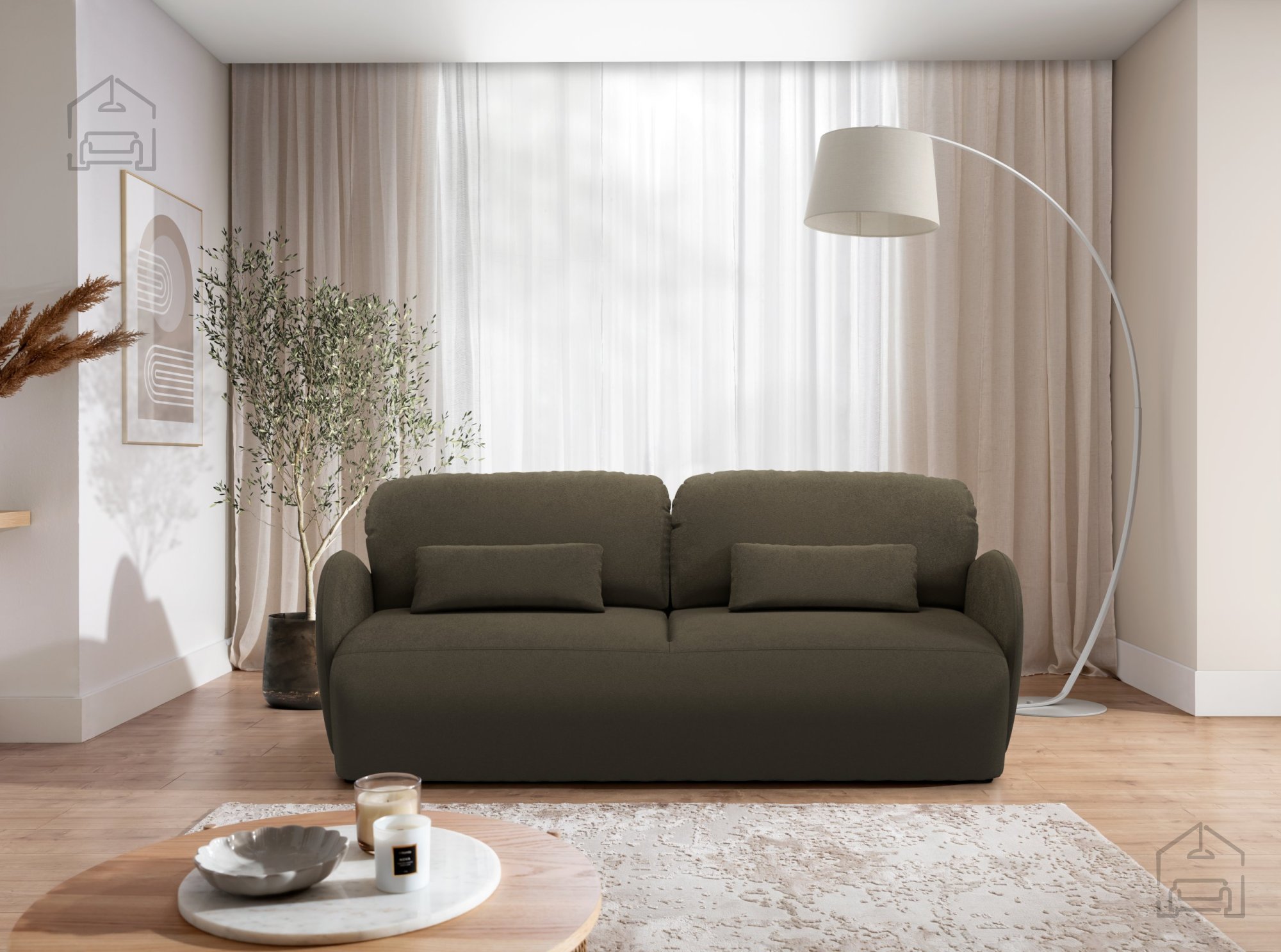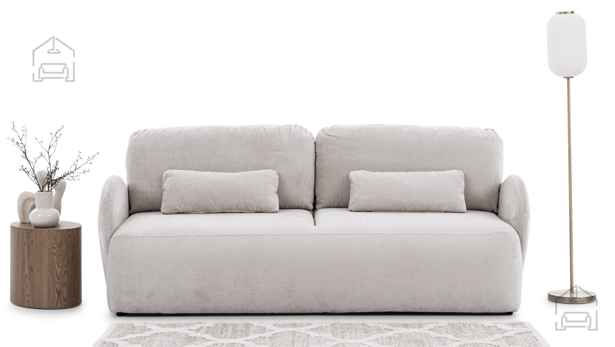 Der Dreisitzer Dinel verfügt außerdem über eine praktische Schublade für Bettwäsche, die Ihnen die Aufbewahrung von zusätzlichen Decken, Kissen oder anderen Utensilien ermöglicht. Dies ist die ideale Lösung für diejenigen, die Ordnung schätzen und den Raum in ihrem Zuhause effizient nutzen möchten.