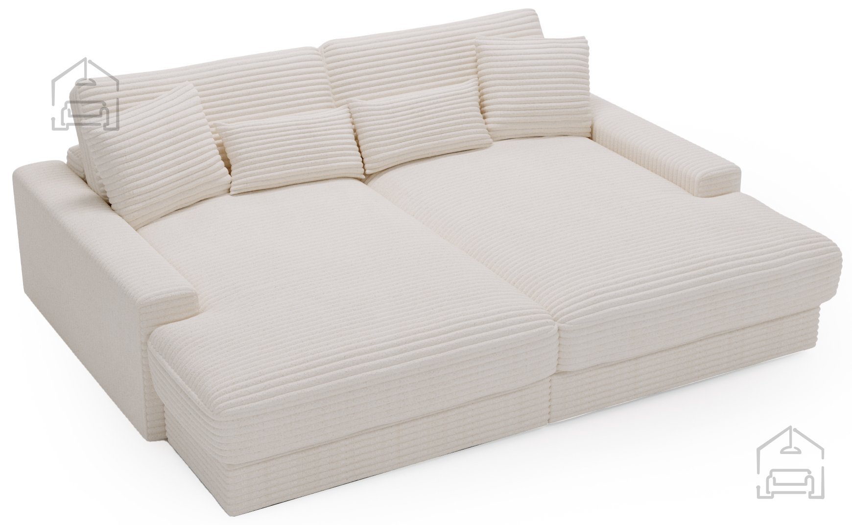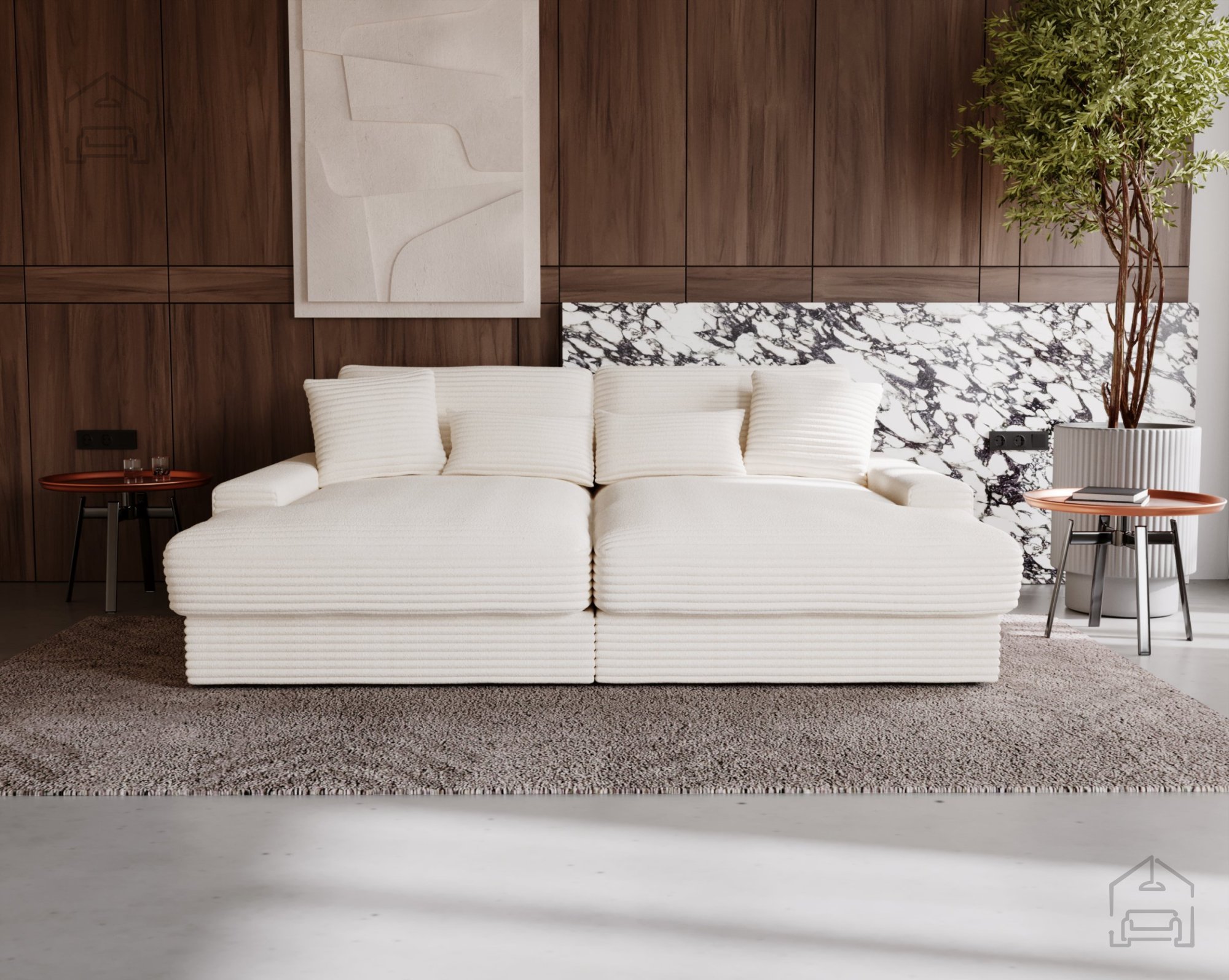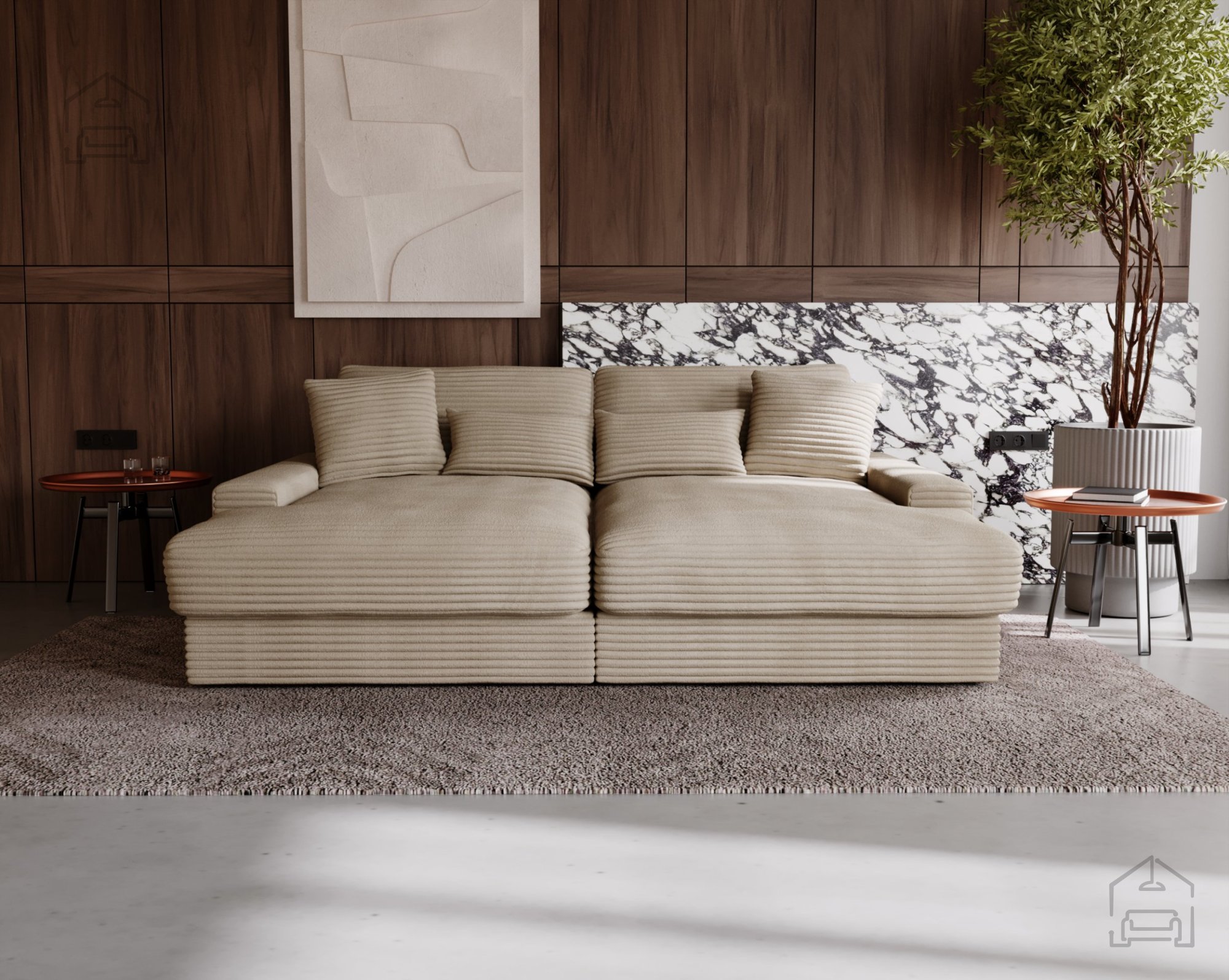 Čeprav dvosed Happy nima funkcije spanja in predala za posteljnino, njegova širina 140 cm omogoča, da se lahko enostavno prilagodi vsakodnevnim potrebam. Dve veliki in šest majhnih blazin omogočajo dodatno udobje in prilagodljivost, saj jih lahko uporabite po želji.
