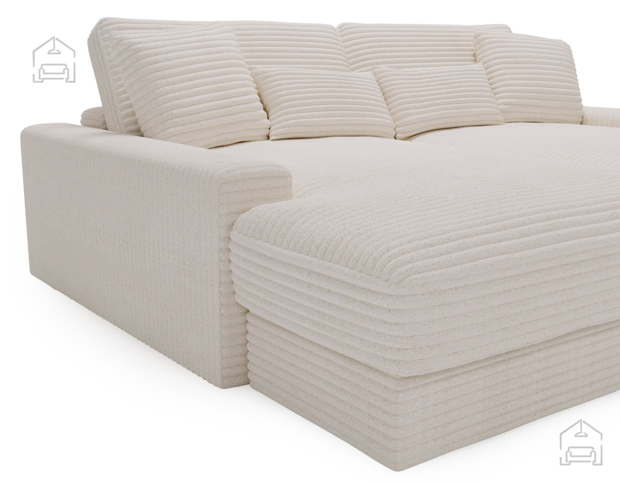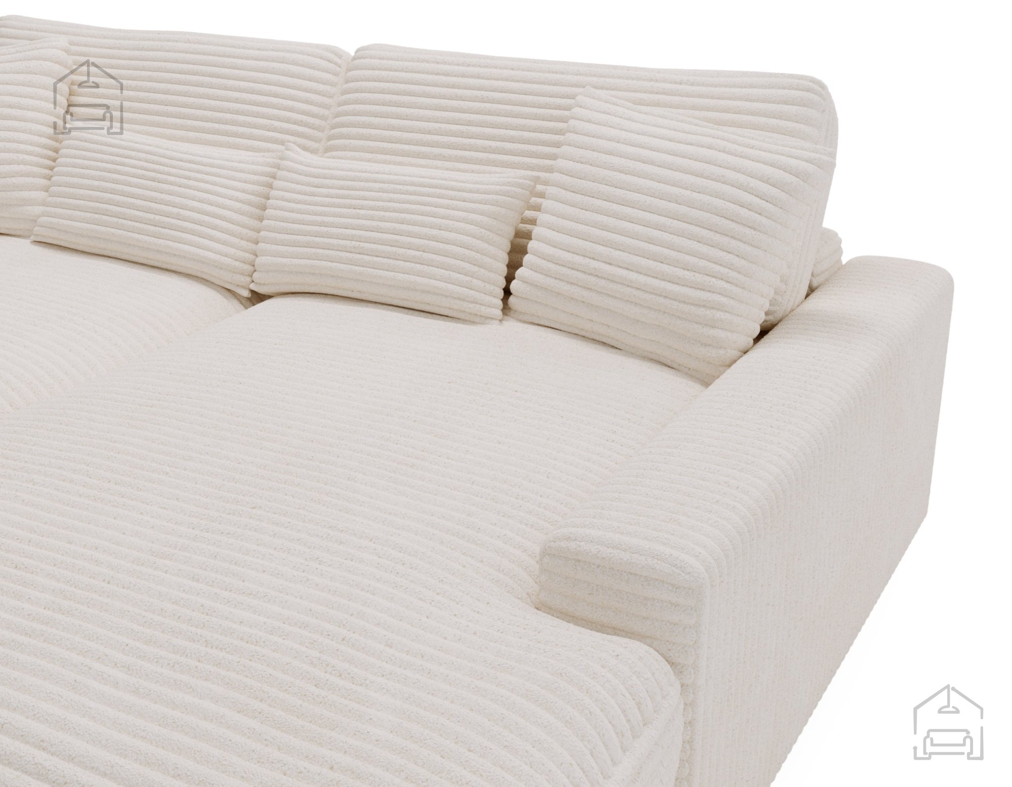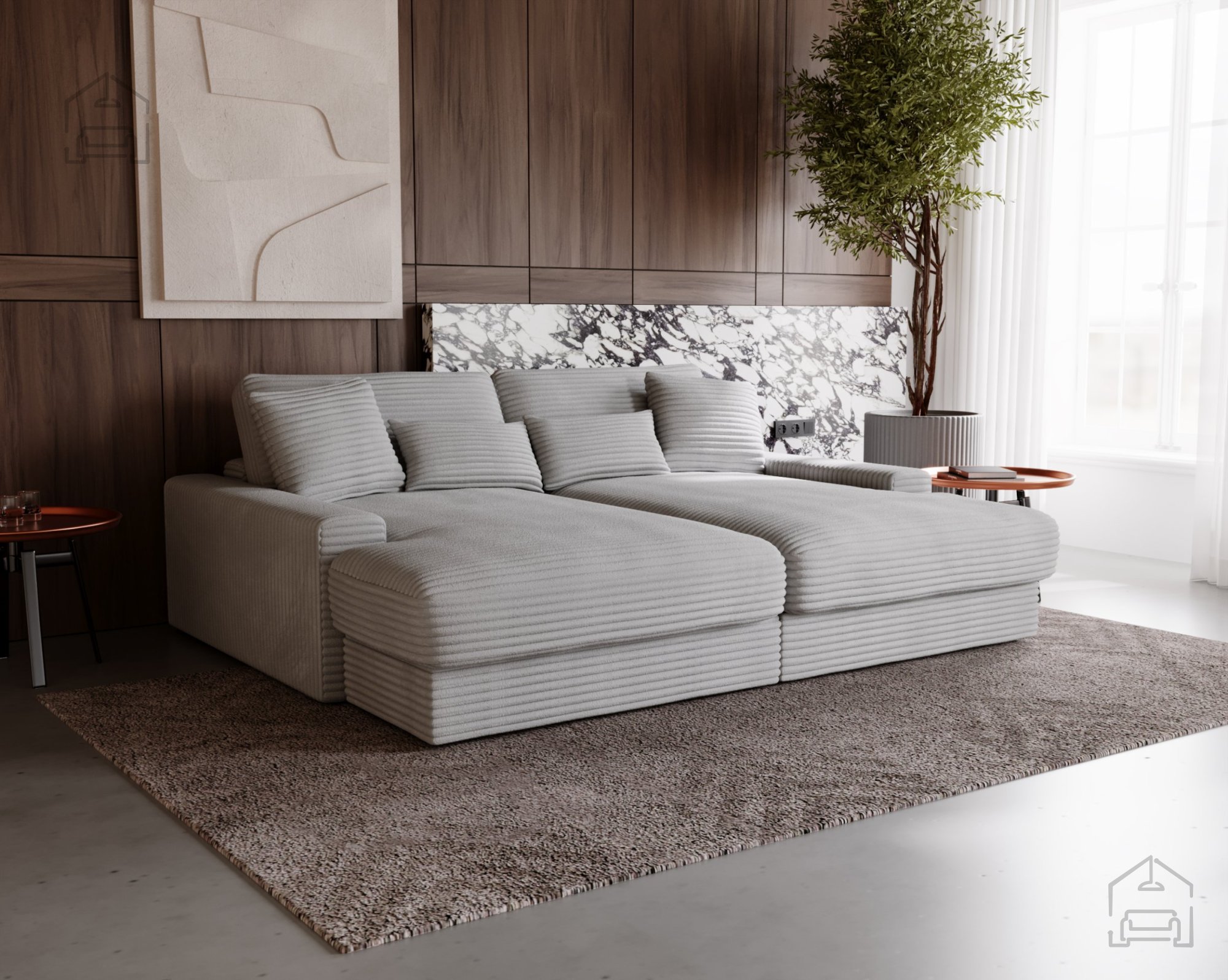 Čeprav dvosed Happy nima funkcije spanja in predala za posteljnino, njegova širina 140 cm omogoča, da se lahko enostavno prilagodi vsakodnevnim potrebam. Dve veliki in šest majhnih blazin omogočajo dodatno udobje in prilagodljivost, saj jih lahko uporabite po želji.